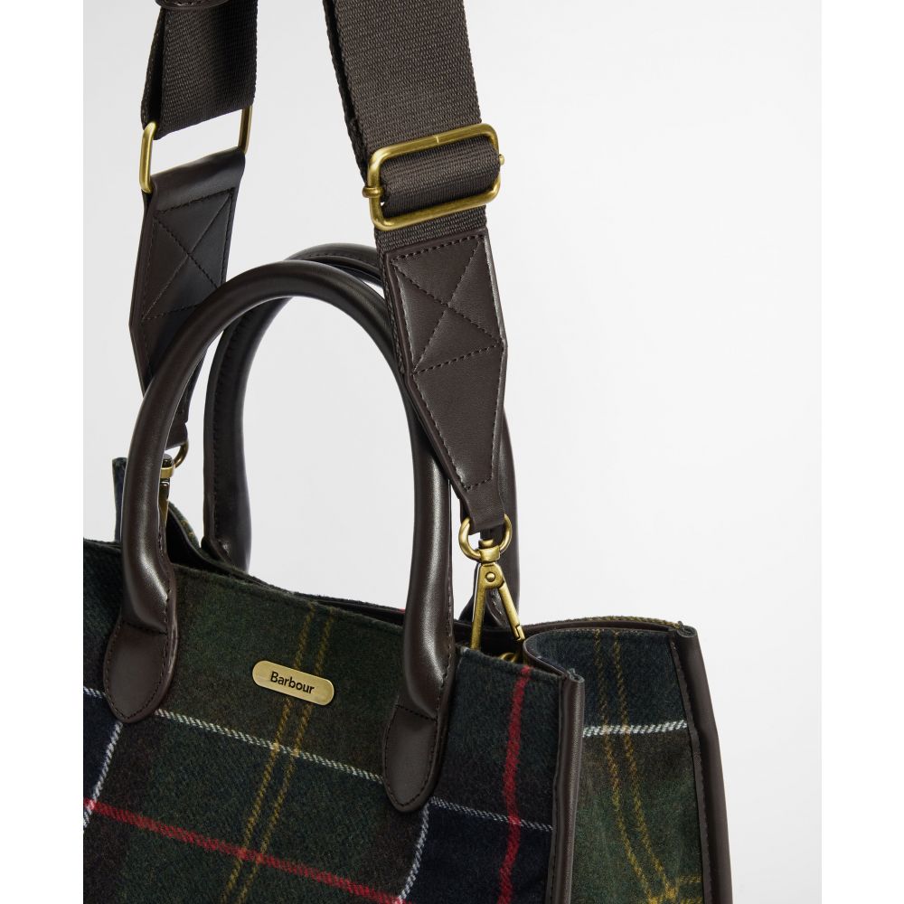 Product ID: LBA0423OL911Barbour's heritage is deep rooted on the Scottish borders, specifically in Dumfries. You may have noticed our use of tartan in the lining and trims of some our most recognisable garments and our accessories are no different. The Barbour Barrhill Tartan Tote Bag pays homage t our Scottish roots with its wool blend tartan design and faux-leather trims. Complete with two top handles and a detachable, webbed cross-body strap, this tote bag is ready to house your every day essentials on-the-go.