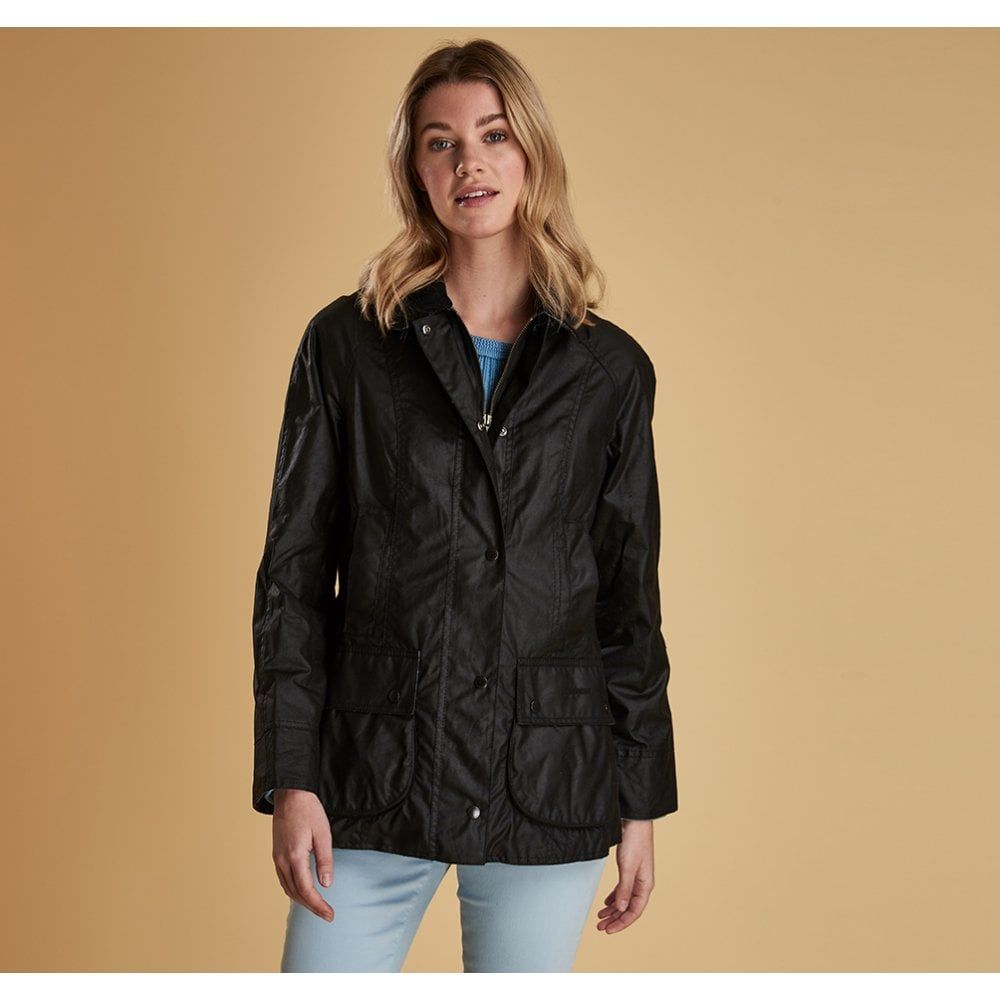 Product ID: LWX0667BARBThe Barbour Beadnell Wax Jacket is a gorgeous jacket which has been based on the much loved and iconic men's jacket. Crafted from a 6oz waxed cotton in a classic style it will offer you an elegant and feminine look when worn. Featuring a a zip fastening and studded stormfly front, two large pockets which are lined in Barbours traditional tartan print, two moleskin lined handwarmer pockets and is finished with a corduroy collar. The Beadnell Wax promises to keep you warm and stylish this season.