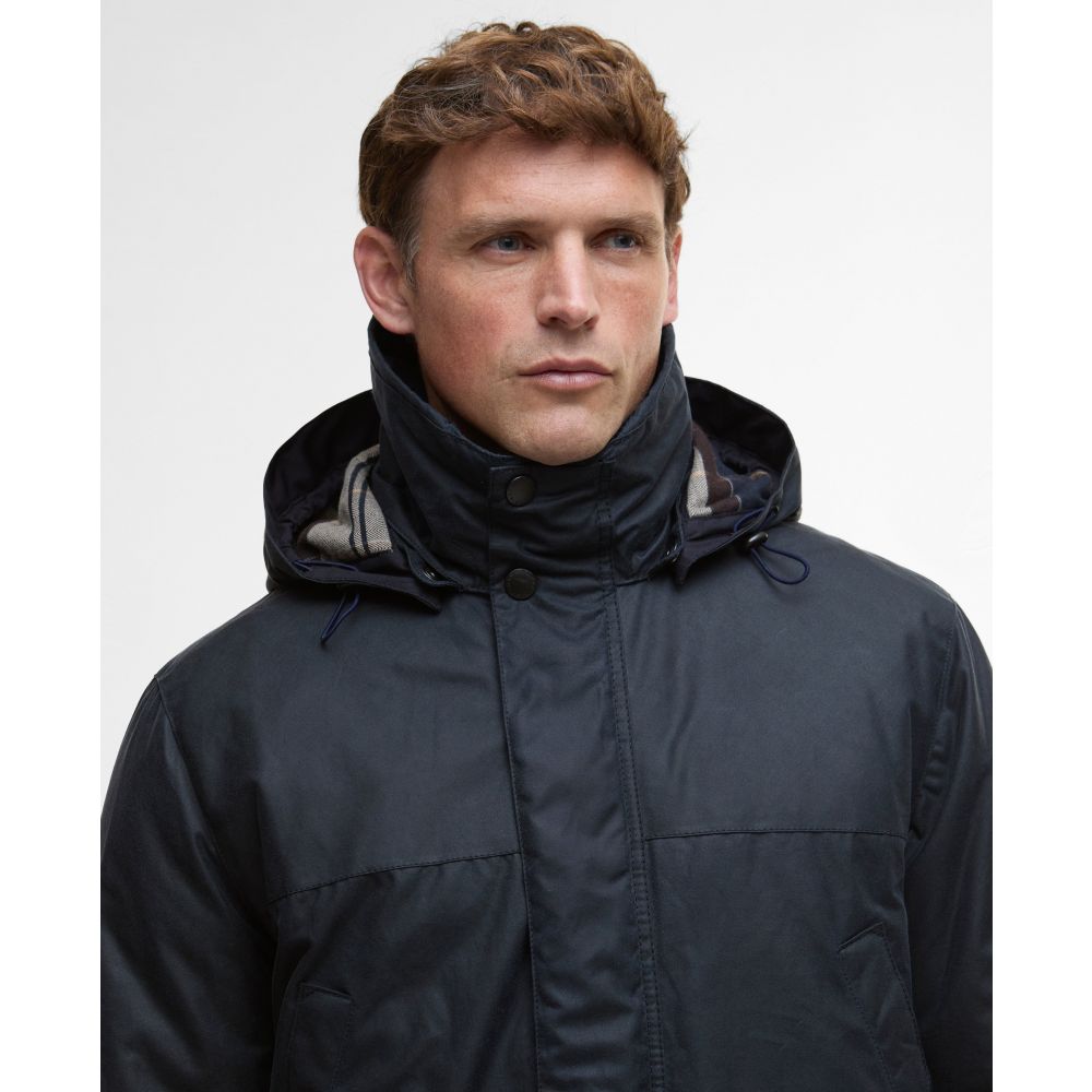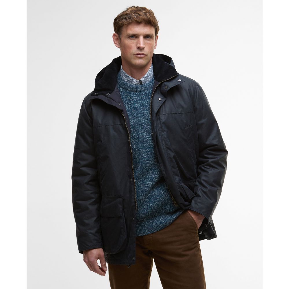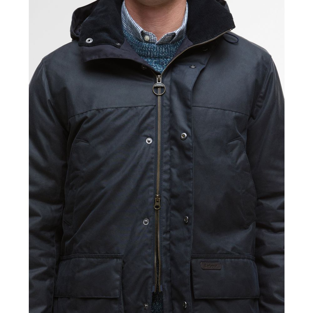 Product ID: MWX2355Adding a new design to the Barbour waxed jacket collection, the Barbour Bleaberry Waxed Jacket has been crafted from one of our most-loved and hardest-wearing waxed cotton weights, the 6oz Sylkoil. Detailed with a fixed hood and tall lined stand collar for optimal protection from the elements, its perfect for cold-weather wear and countryside lifestyles.