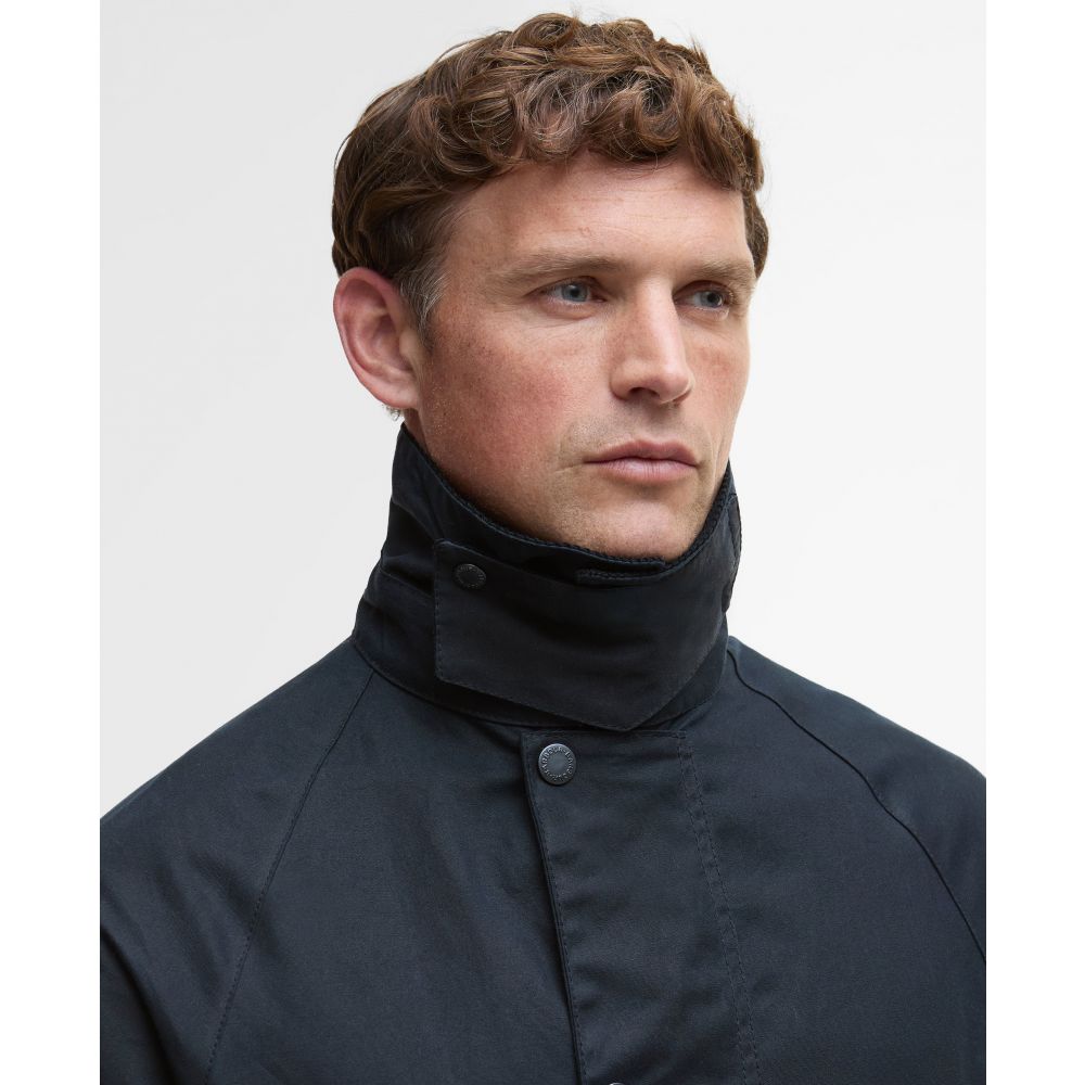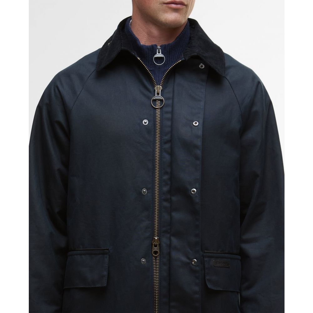 Product ID: MWX2490Prepare your outerwear wardrobe for the unpredictable British weather with the Barbour Country Waxed Mac. Crafted from durable 8oz waxed cotton with our signature needlecord collar and handy throat tab, this timeless jacket is the perfect protection in the transitional seasons. Finished with two leather-trimmed pockets and a studded vent at the hem, this jacket brings both function and unmistakable charm to every countryside adventure.