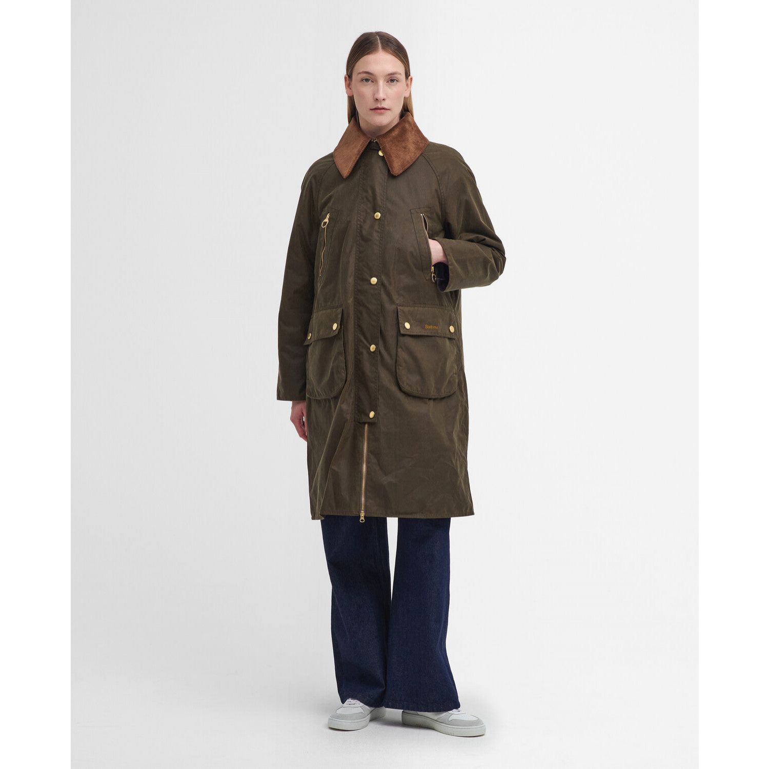 Product ID: LWX1398SN9116Inspired by our classic archive designs, the Barbour Ebberston Waxed Jacket offers a seamless blend of tradition and modernity. Crafted from our signature waxed cotton for classic look while an oversized rendition of our signature cord collar and back vent give it a contemporary touch. Finished with bright gold-tone detailing to the studs and zips, why not try turning back the cuffs to reveal our classic tartan too?