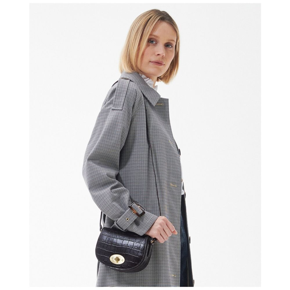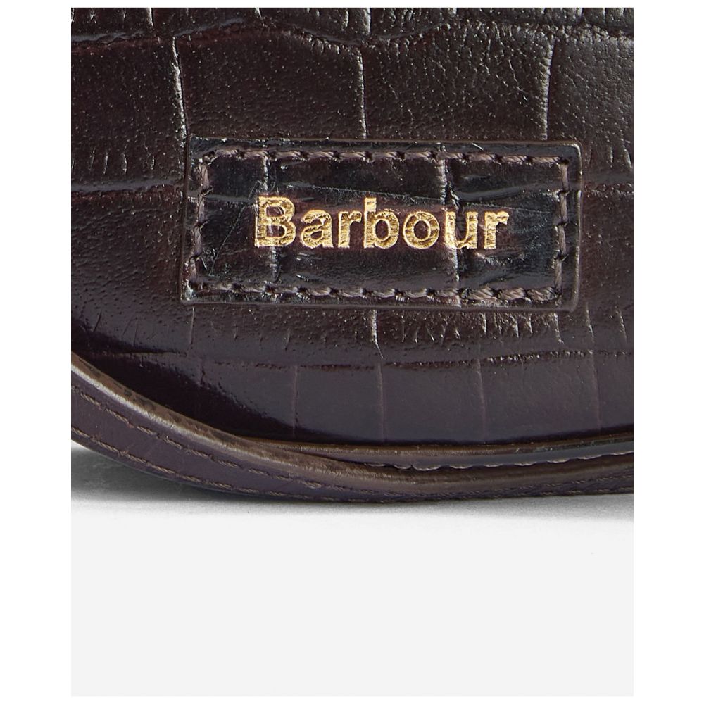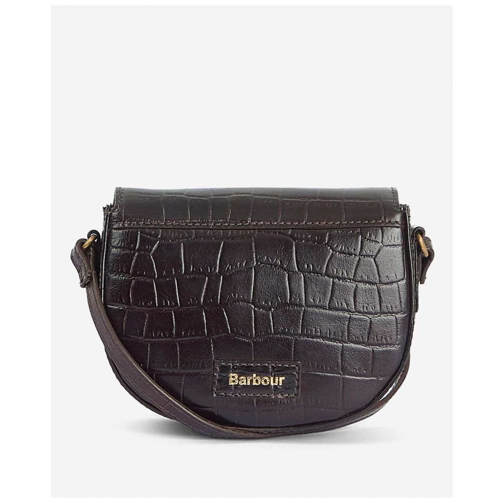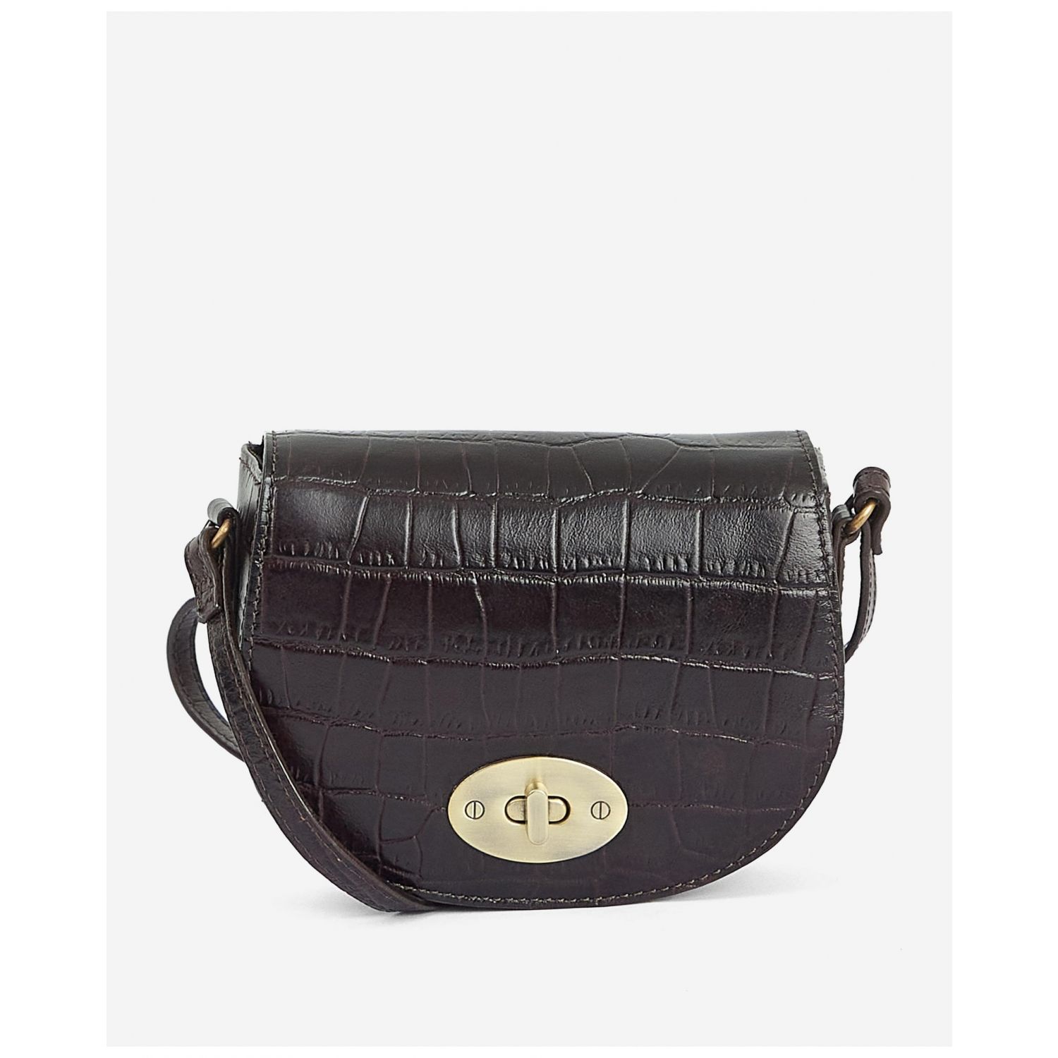 Product ID: LBA0389PU911Crafted from premium leather with a glossy mock-croc finish, the Barbour Eilein Saddle Bag puts a high-fashion spin on traditional equestrian styling. Boasting aged hardware for a vintage look and feel, this compact accessory offers day-to-night appeal thanks to its rounded shape and adjustable shoulder strap. Store the matching purse inside for all-round coordination.