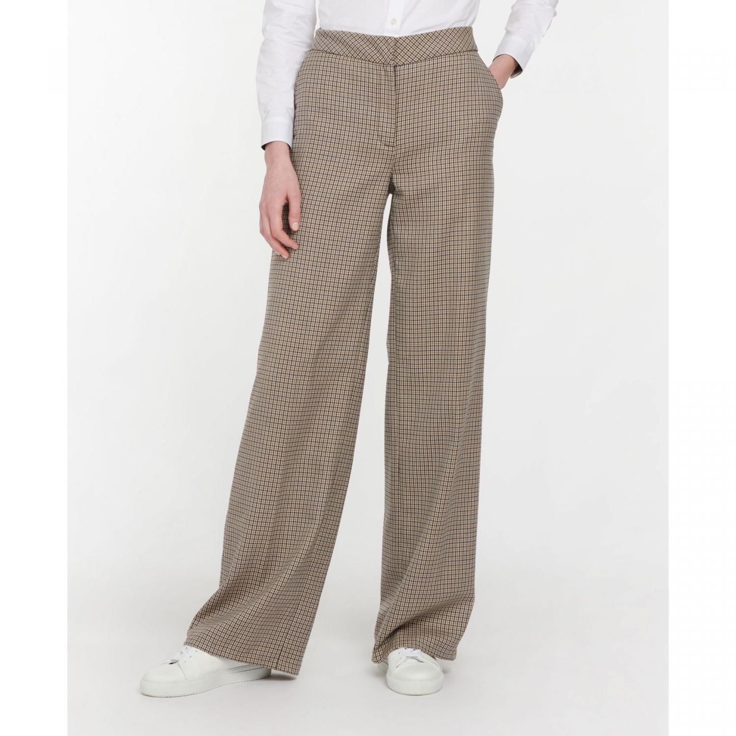 Product ID: LTR0292Be the epitome of style this season with Barbour's Glendevon Check Trousers. With a wide-leg palazzo design, these trousers are comfortable and soft. Finished with pocket detailing, a gorgeous hessian check all over, and back jetted pockets - making it the perfect addition to your wardrobe.