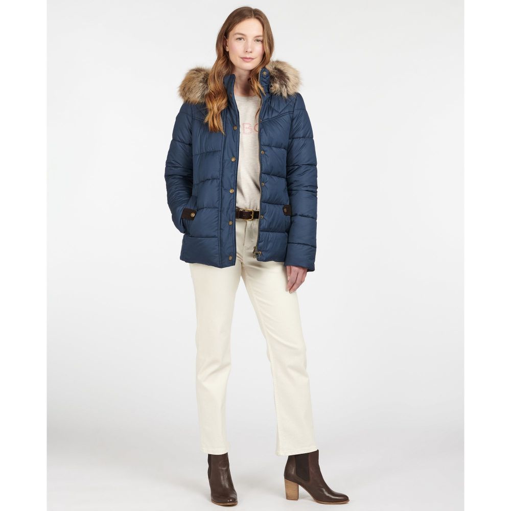 Product ID: LQU1355The Barbour Hawkshead Quilted Jacket is designed with a short style, comfortable quilting, and a faux fur hood, so you'll be well insulated from winter chills. Barbour's signature branding is featured on the left pocket, whilst the cord detailing on the pockets adds a touch of luxury.