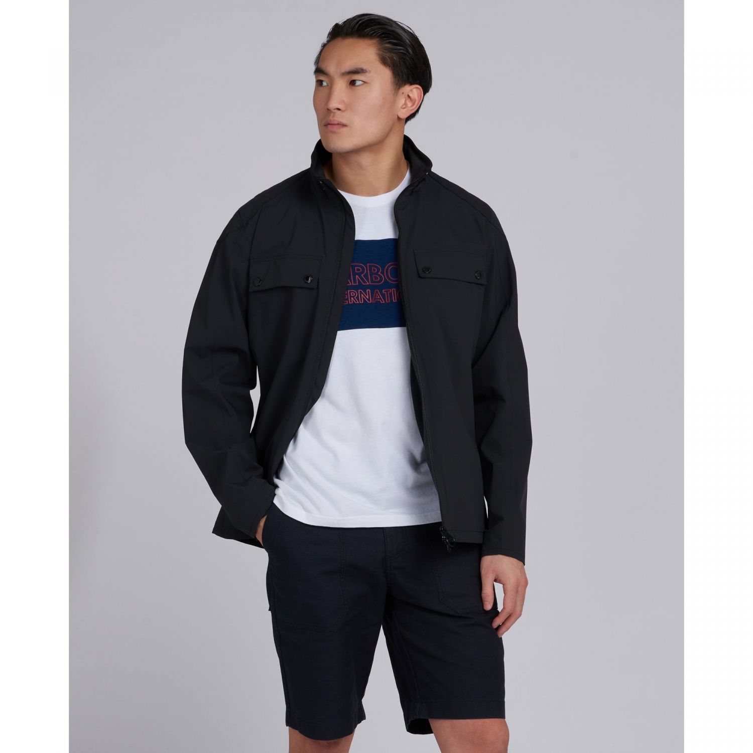 Product ID: MWB0875A new style this season from Barbour International, the Allen jacket is constructed from Barbour's waterproof breathable technical fabric to ensure you stay comfortable and stylish whatever the weather. Created in the iconic Barbour International black, the jacket features two stud fasten chest pockets, quilted patch detailing across the shoulders and finished with side entry pockets to keep all your daily essentials within easy reach.