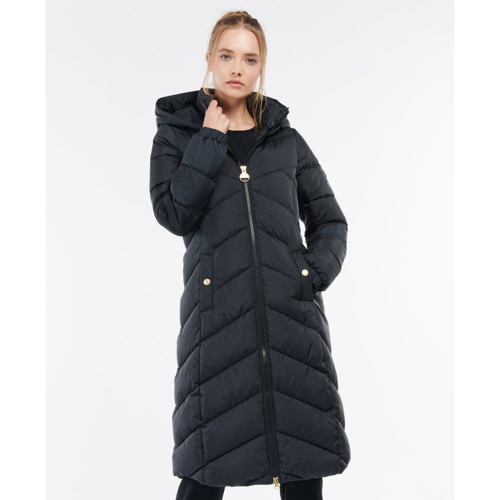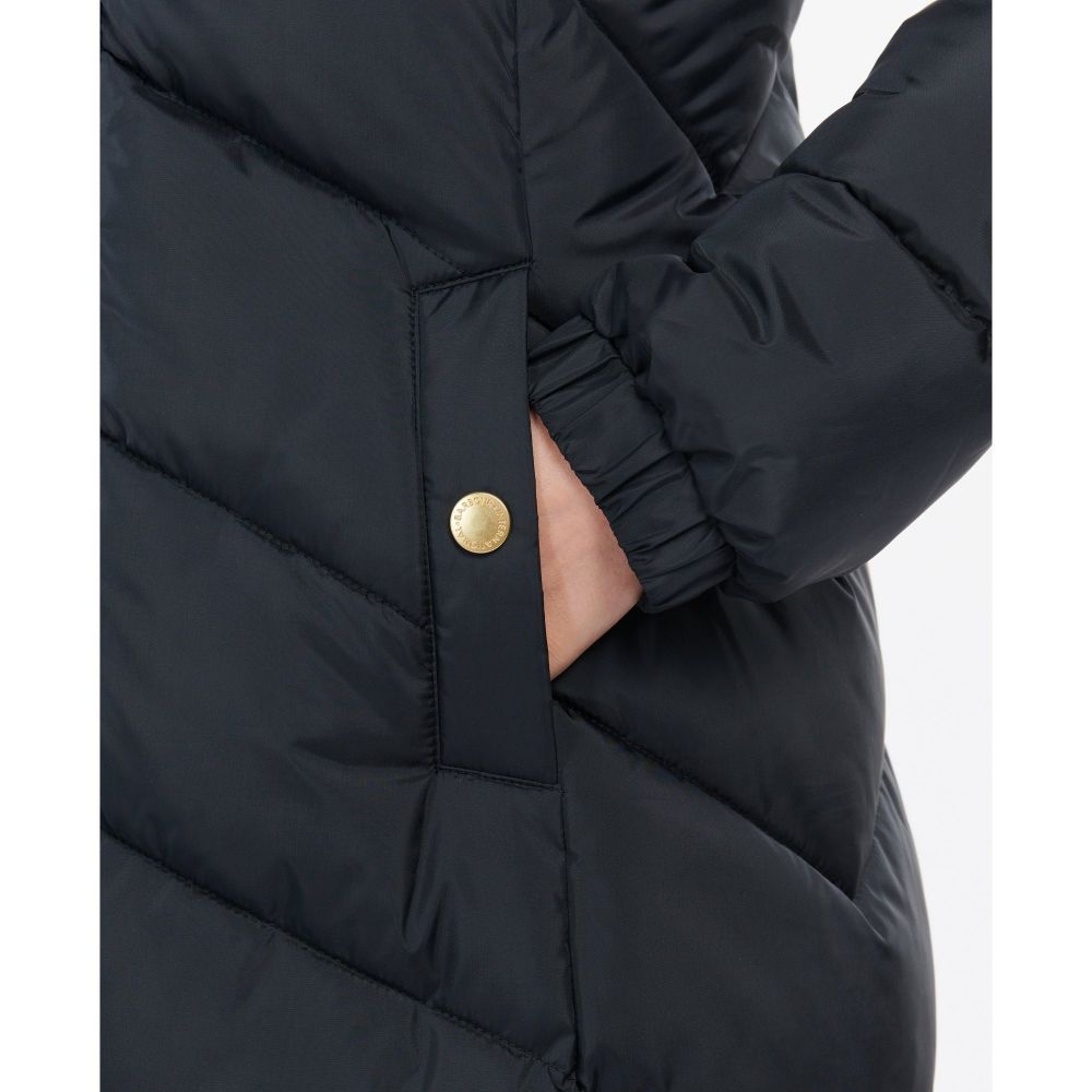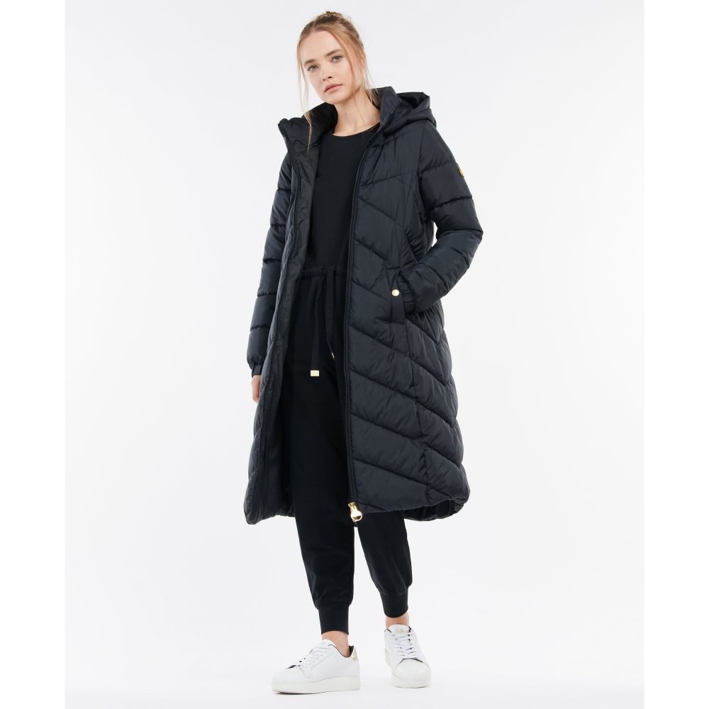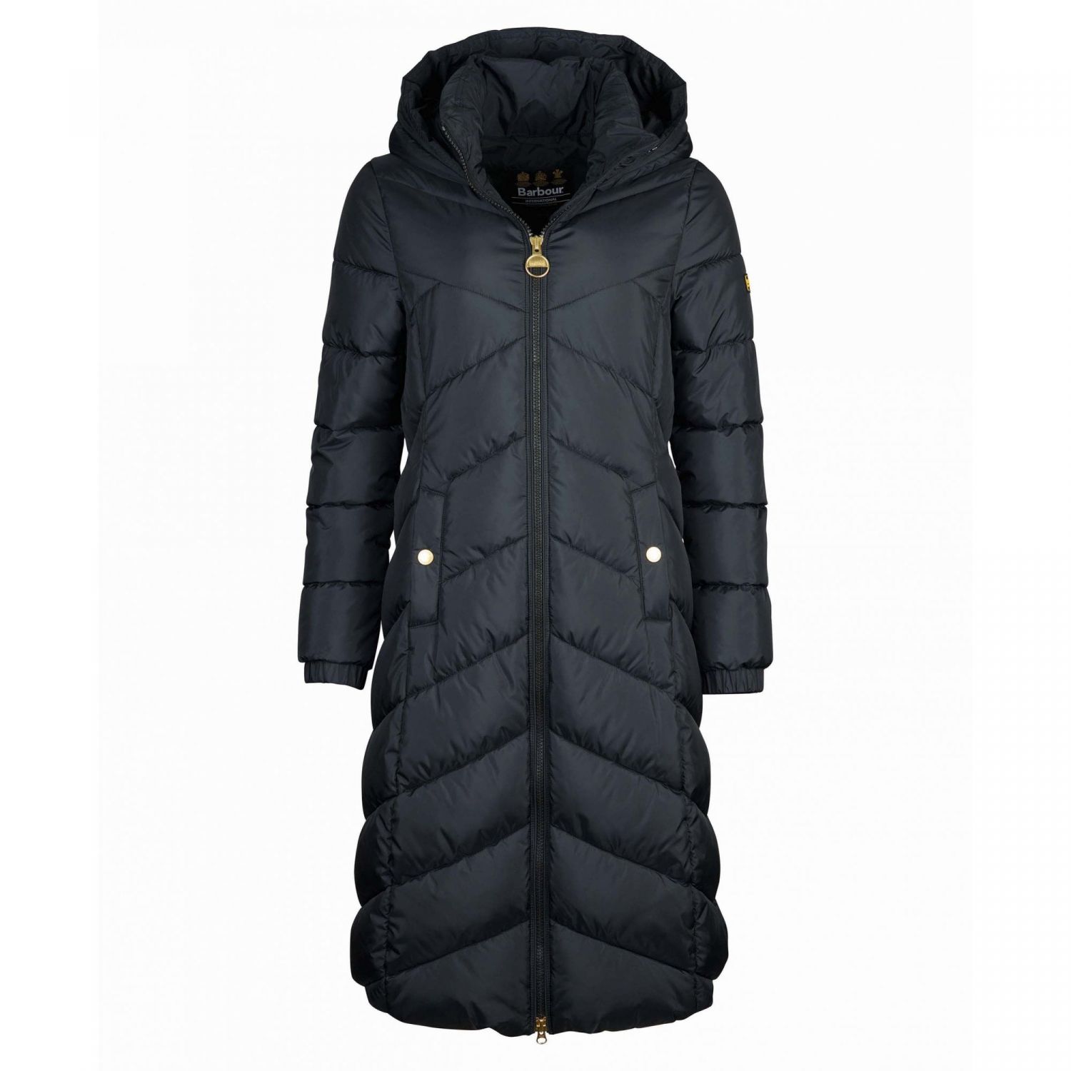Product ID: LQU1406The Athena quilted jacket from Barbour International is ideal to keep you cosy and warm on-trend this season. Styled with flattering longline baffle quilting and a chunky hood with faux fur lining. Elasticated cuffs and studded welt pockets provide the finishing touches to this sophisticated sporty jacket.