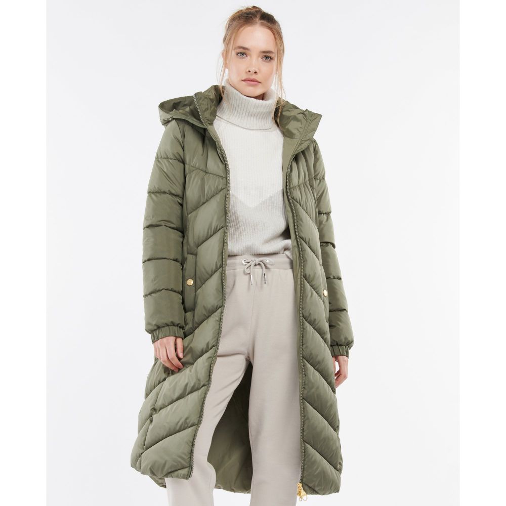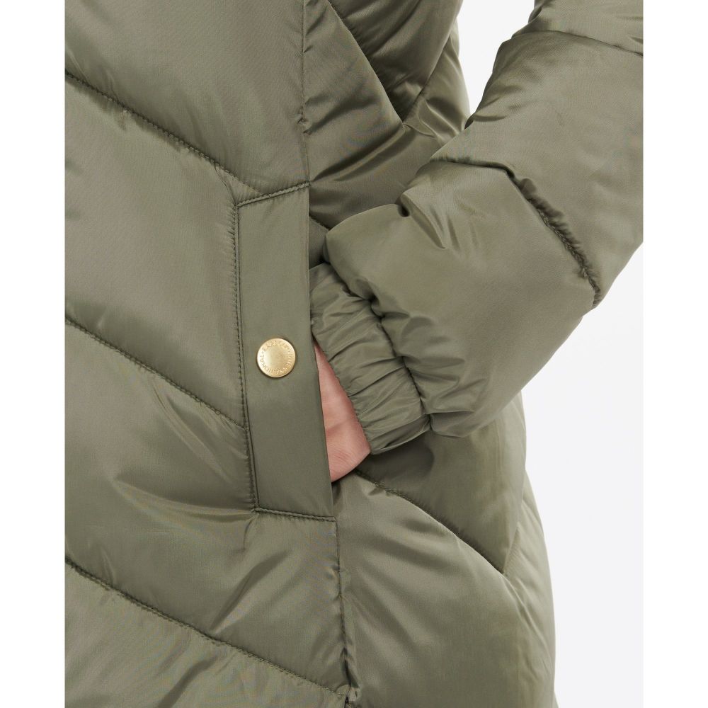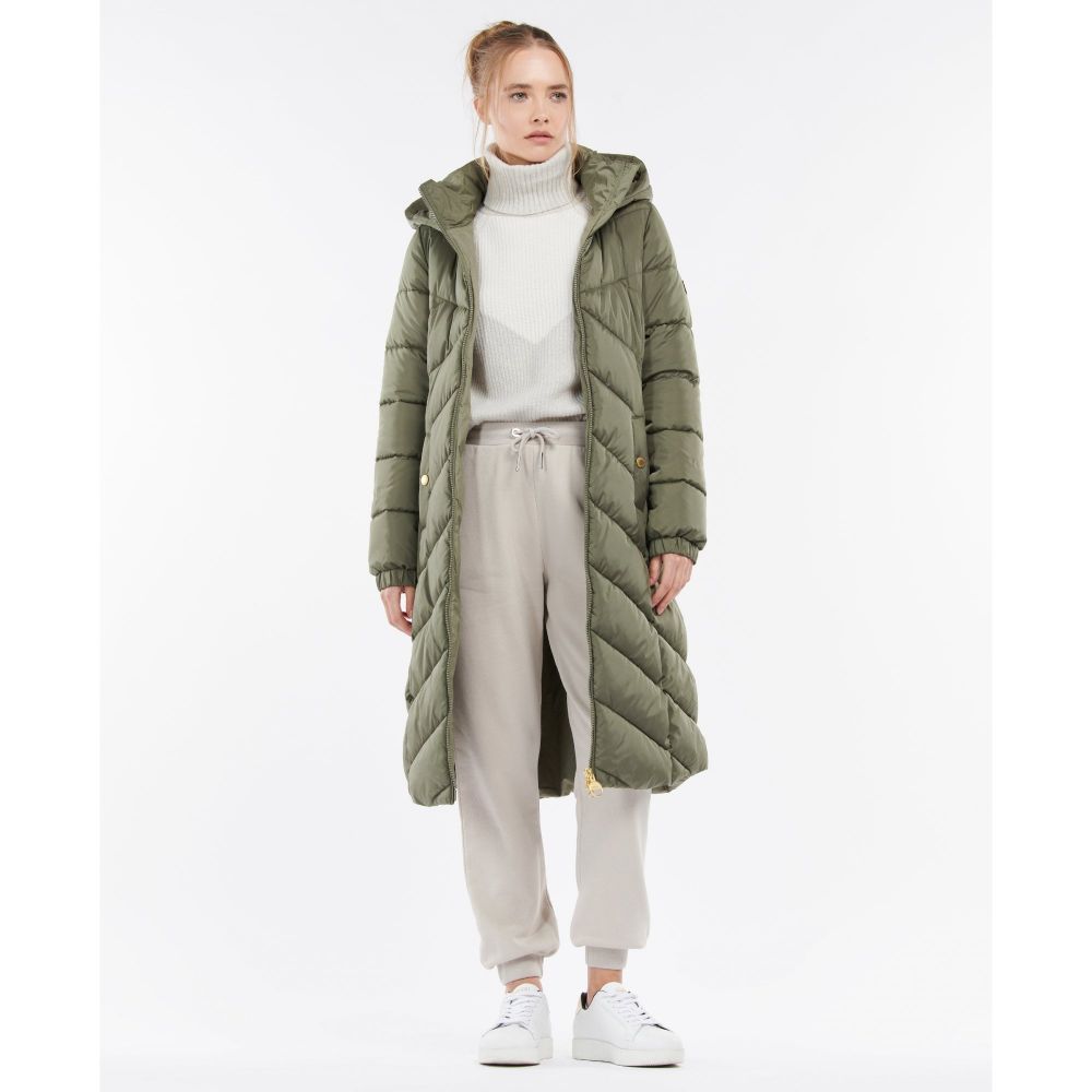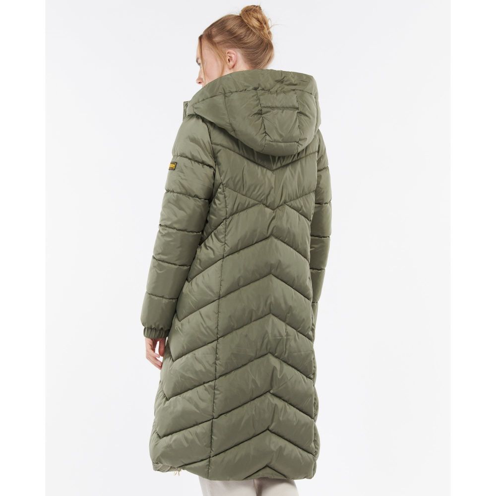 Product ID: LQU1406The Athena quilted jacket from Barbour International is ideal to keep you cosy and warm on-trend this season. Styled with flattering longline baffle quilting and a chunky hood with faux fur lining. Elasticated cuffs and studded welt pockets provide the finishing touches to this sophisticated sporty jacket.