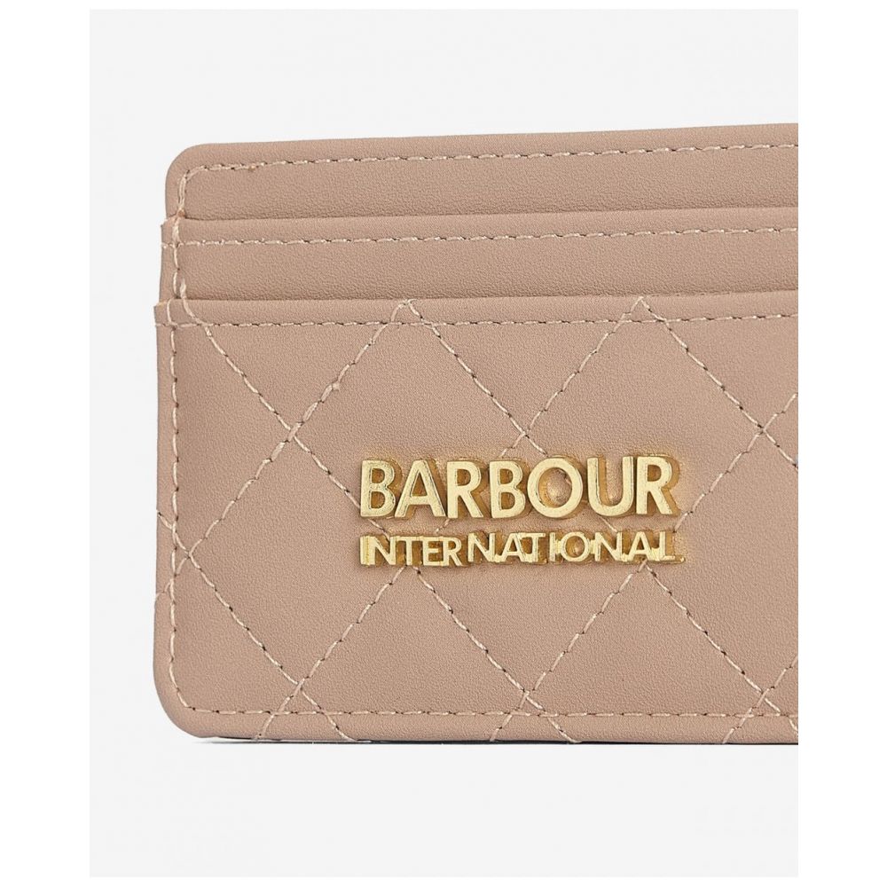 Product ID: LAC0321CM311This sleek and compact card holder offers an understated way to keep your monetary needs always close to hand without the need to worry whether it will fit in your bag. Complete with signature diamond quilting and a new brass Barbour International logo, this design features four card slots and a middle compartment for spare change and notes on the go.