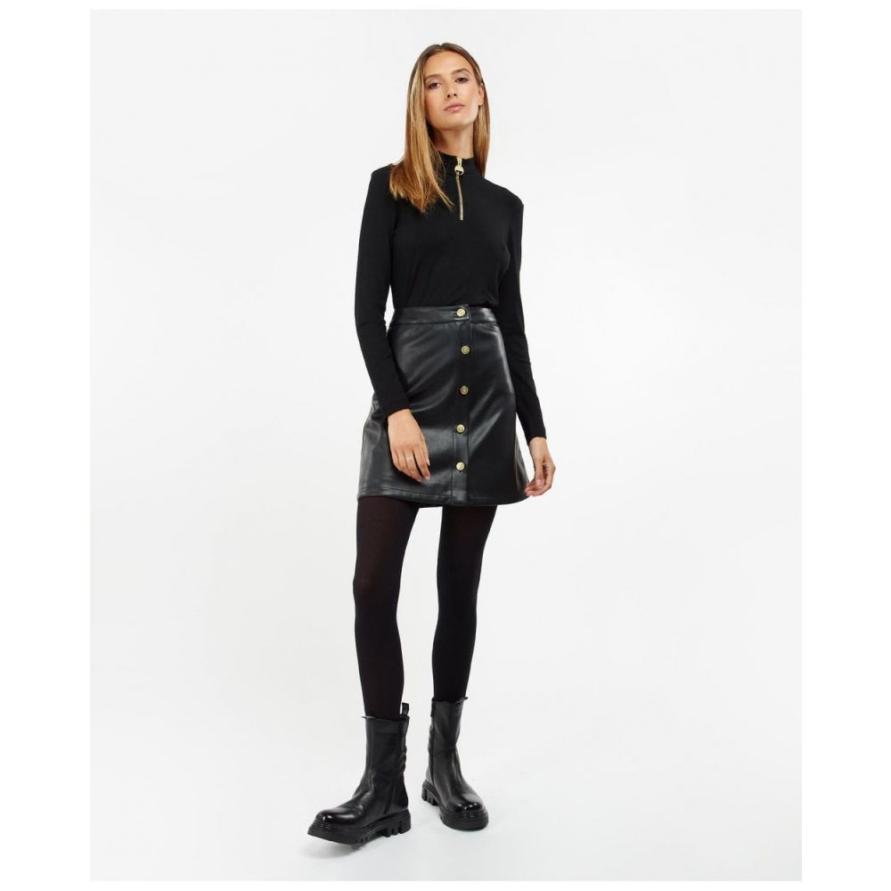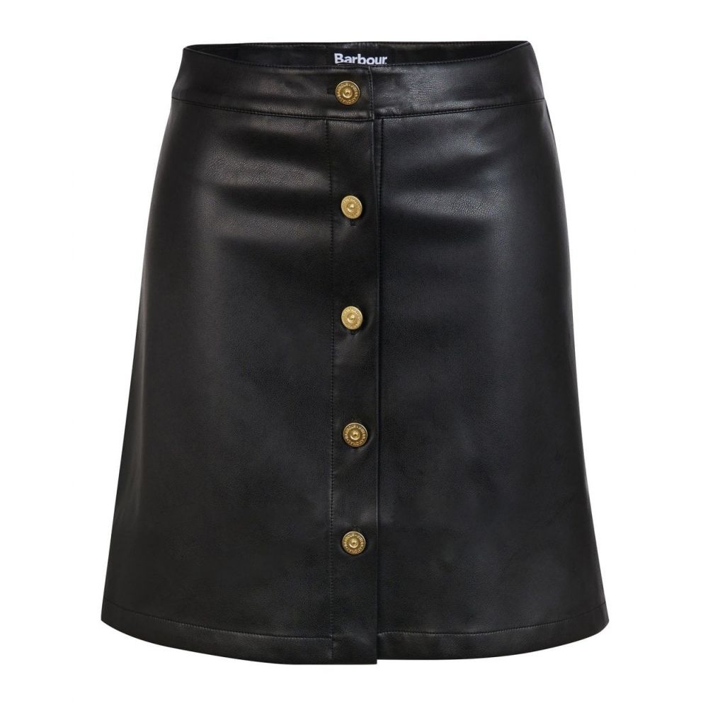 Product ID: LSK0068The Barbour International Napier Skirt boasts a faux leather design for timeless styling. Showcasing an A-Line silhouette, this garment features a button front fastening with branding to the inner waistband.