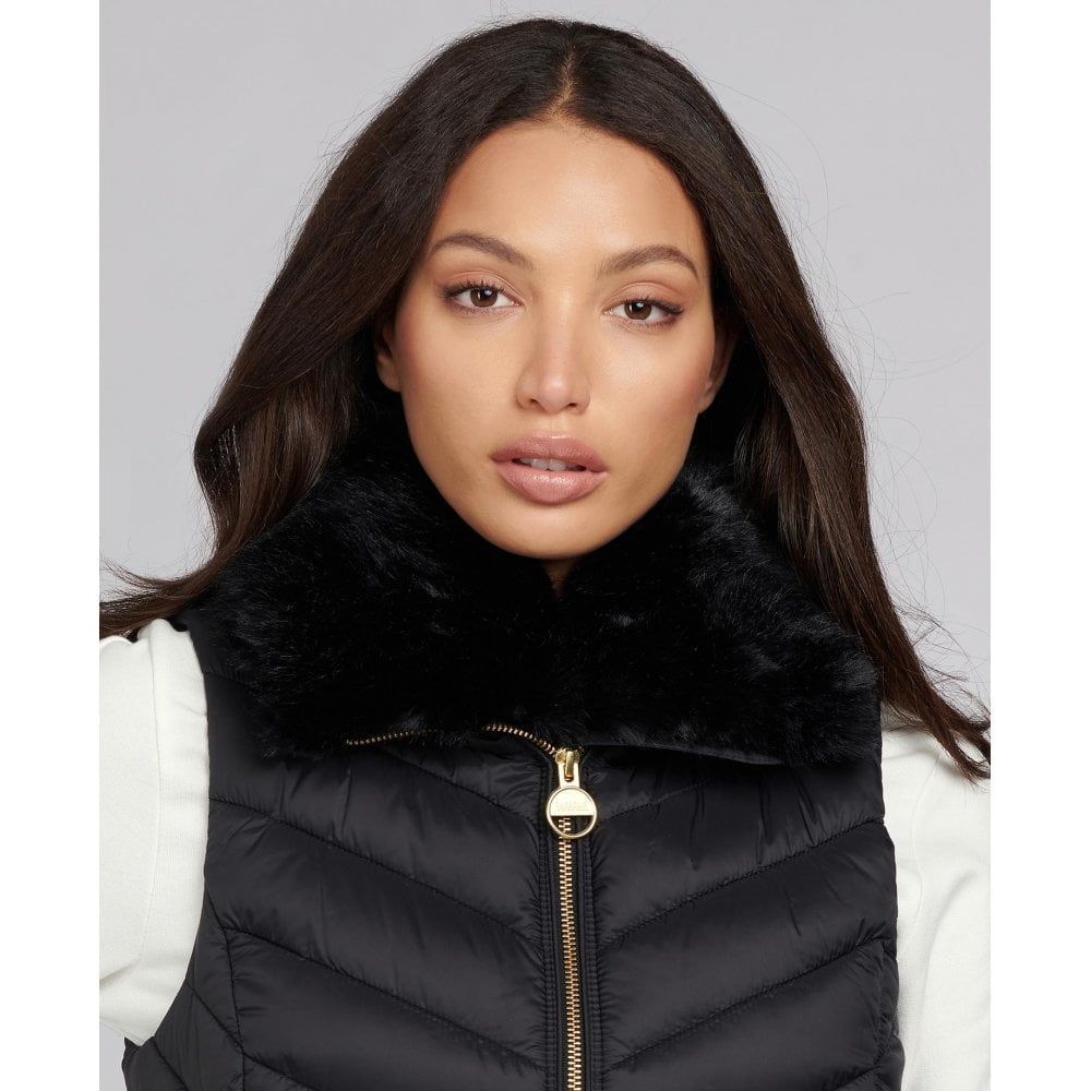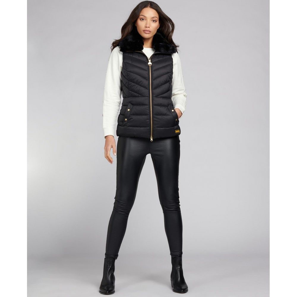 Product ID: LGI0067The Simoncelli Gilet from Barbour International is a wardrobe staple for this season. Treat yourself to the ultimate gilet with a gorgeous feminine fit, double studded welt pockets and a dipped back hem. Feel cosy wherever you go with its funnel neck and fur collar, perfect for customising your look.