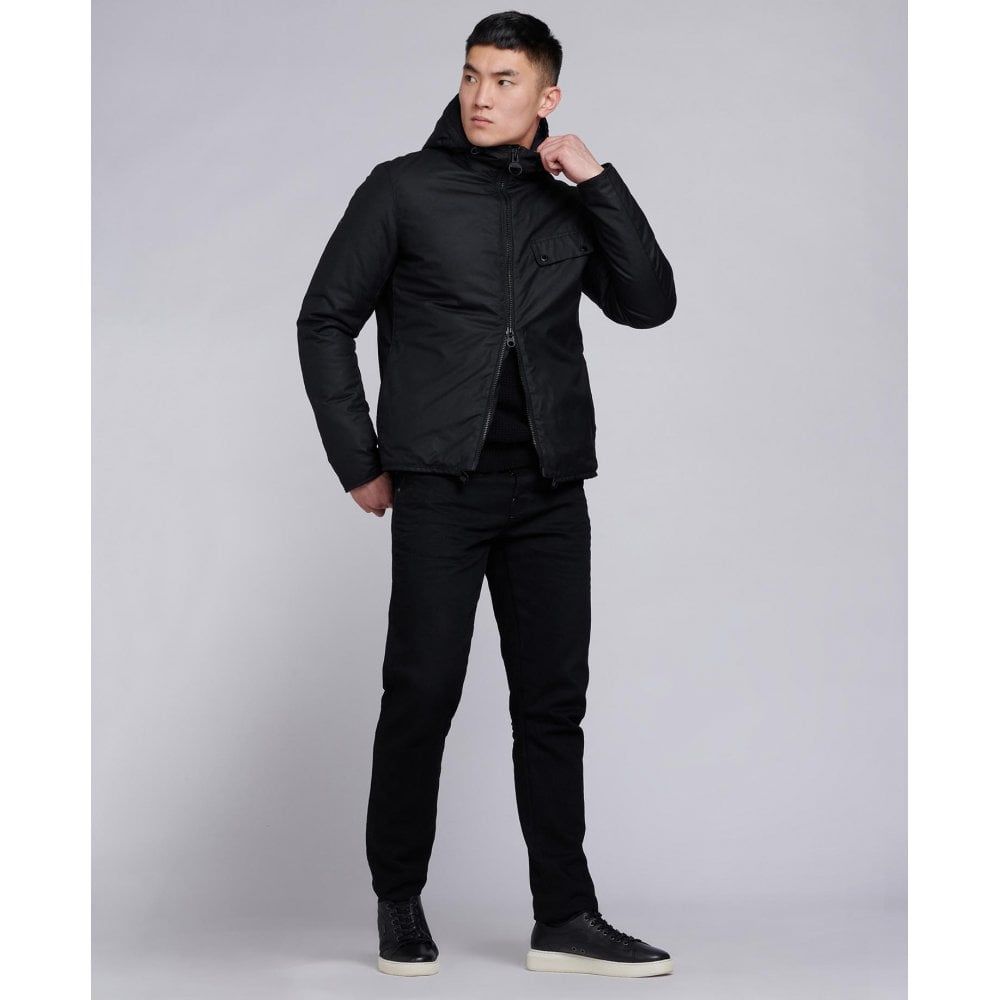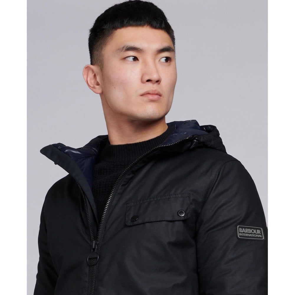 Product ID: MWX1886The Vision Wax Jacket from Barbour International combines the practicality of the classic wax jacket, with the added warmth of a quilted jacket, to create the perfect winter coat. Featuring a fixed hood to protect you against the elements, an adjustable hem for the perfect fit, side pockets and snake quilted lining for extra warmth. This stylish jacket is finished with an angled chest pocket, to pay tribute Barbour International's rich motorcycle heritage.