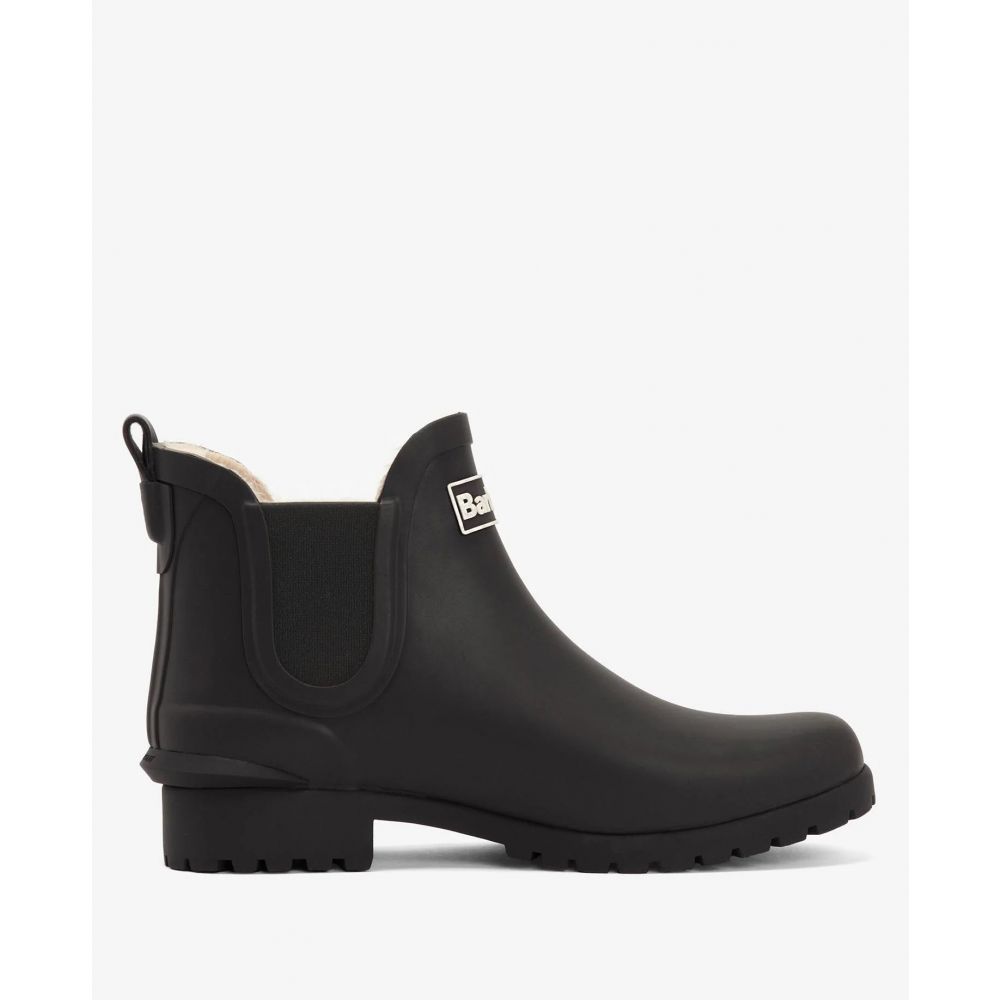 Product ID: LRF0104A fashion-focused twist on the classic Wellington, the Barbour Kirkton Ankle Wellies boast a Chelsea-boot-inspired look, lined with faux-fur for optimal warmth and detailed with Barbour's signature logo branding to the front. Complete with elasticated side gussets and pull tabs to make dressing easy, while the sleek look means they’re perfect for wearing all year round.