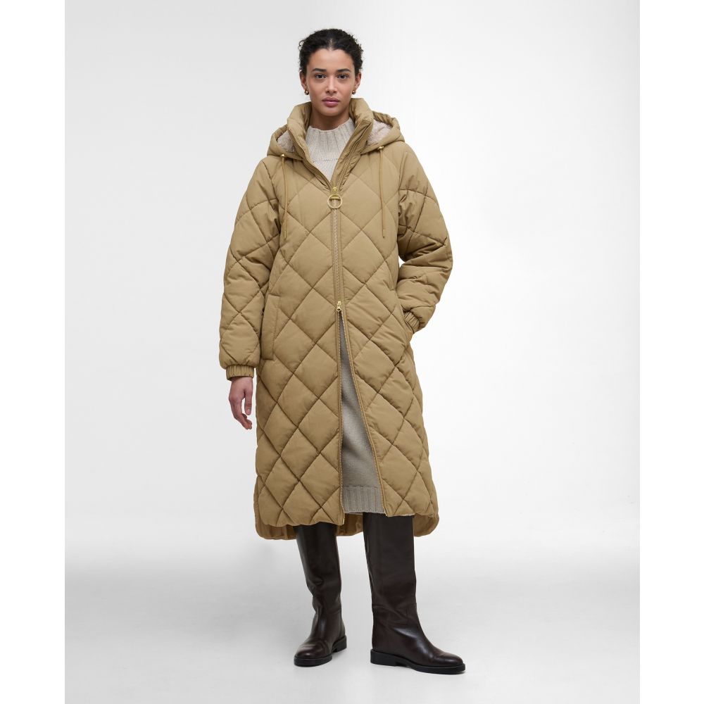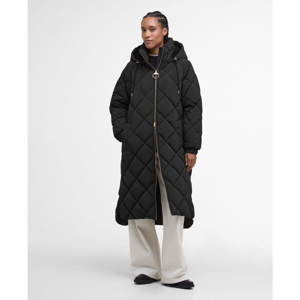 Product ID: LQU1745Invest in Barbour's signature diamond quilting with the Barbour Kirkton Puffer Jacket. This longline style features Barbour's iconic diamond quilting in a magnified form thanks to its 4" style. Complete with an oversized fixed hood and elastic cuff details to lock in the warmth, it's perfect for heading out into the colder weather.