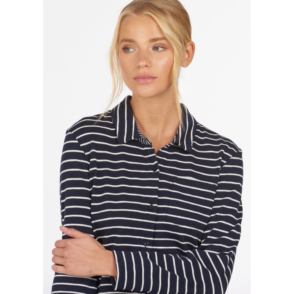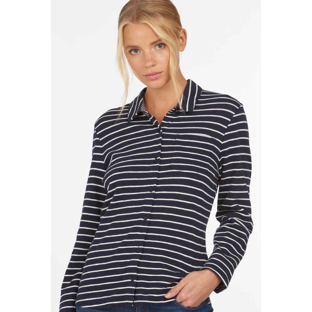 Product ID: LSH1384This Barbour Ladies Merseyside Shirt is the perfect go-to for those smart, casual days and can be worn from season to season. Crafted from 100% cotton, you are bound to love wearing this luxuriously soft jersey shirt! With a classic all-over stripe and branded buttons along the front, this shirt is a must-have item that creates the perfect look with minimal effort.