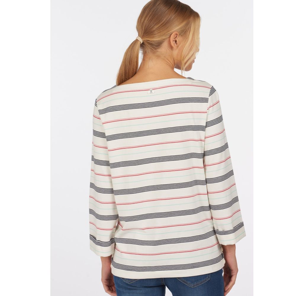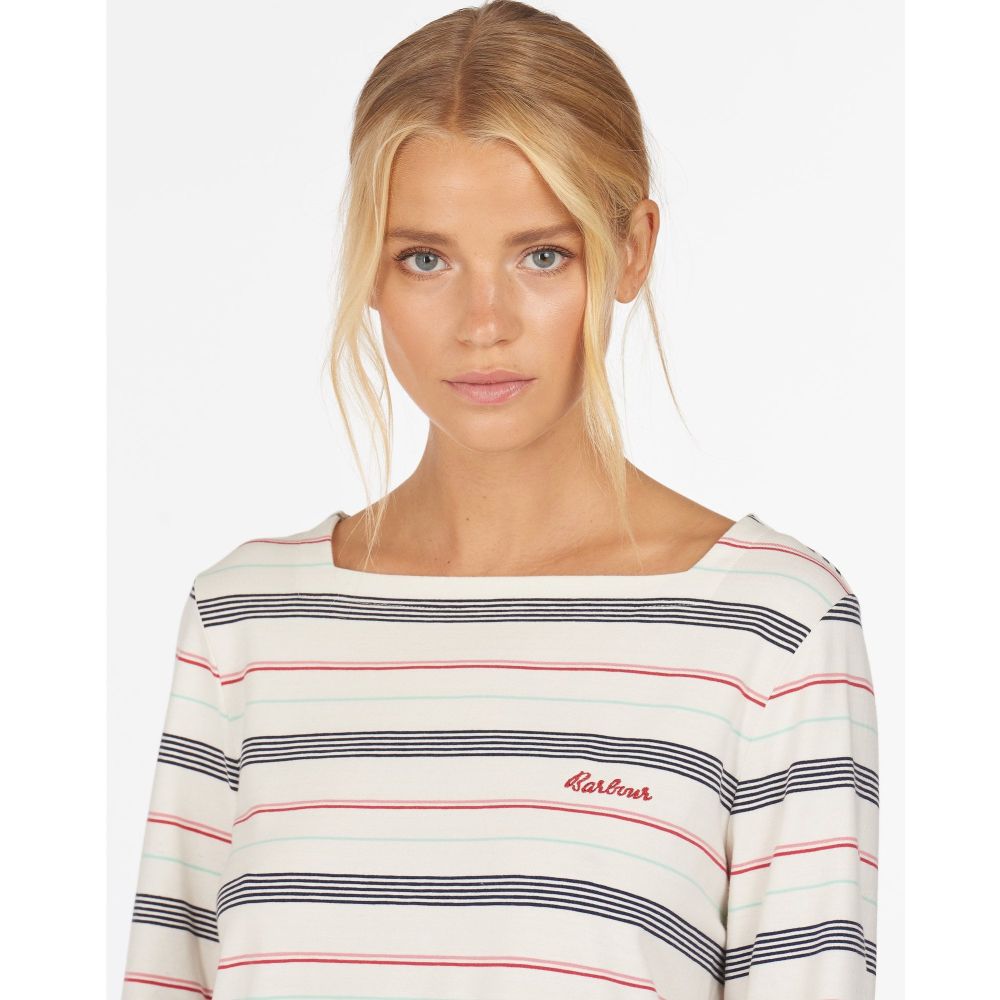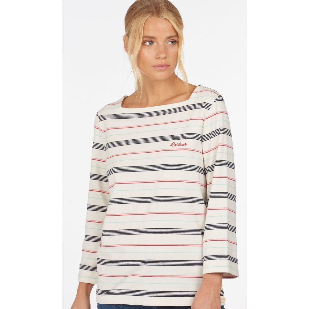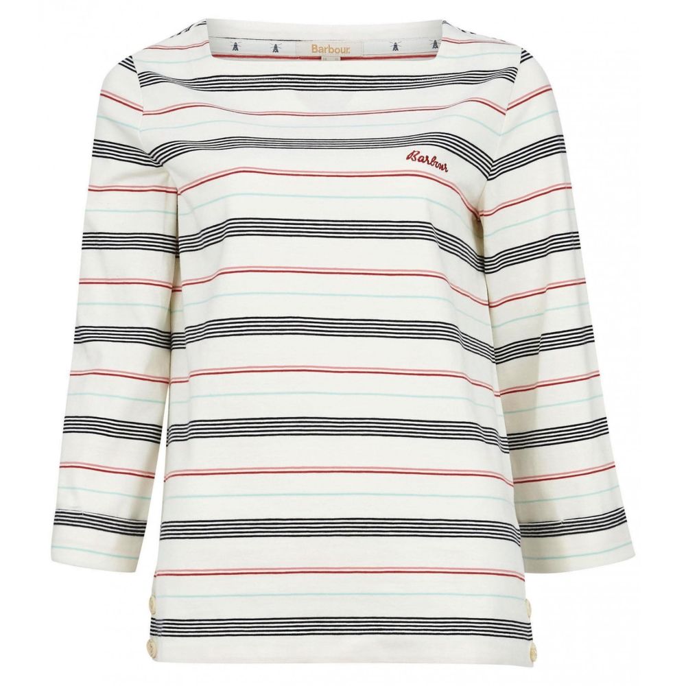 Product ID: LML0720We love this easy to wear Ladies Merseyside Top by Barbour. Crafted from luxuriously soft cotton with added stretch for effortless comfort, this top is finished with a stylish stripe pattern for a nautical feel. Detailed with a square neckline, three quarter length sleeves and buttons at the side seams, it's finished with a small Barbour script logo embroidered to the chest.
