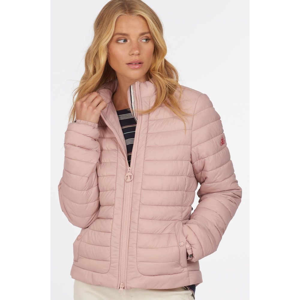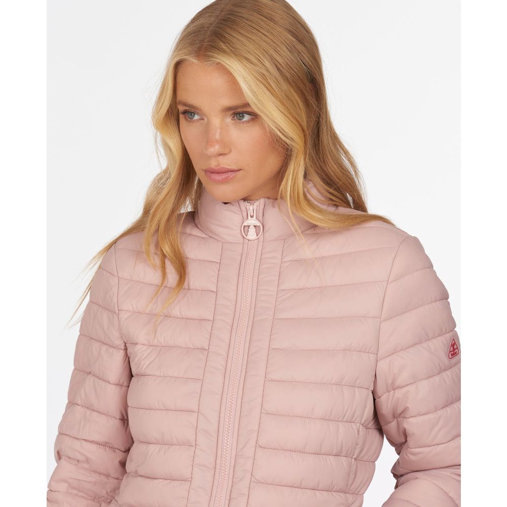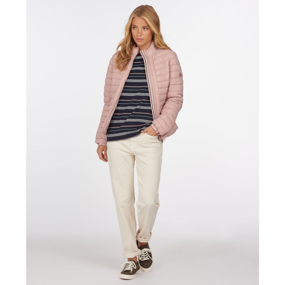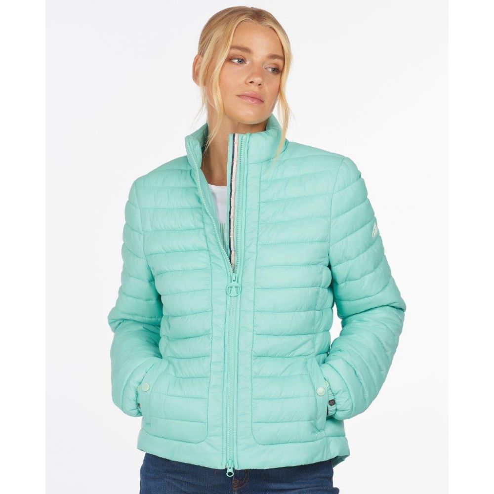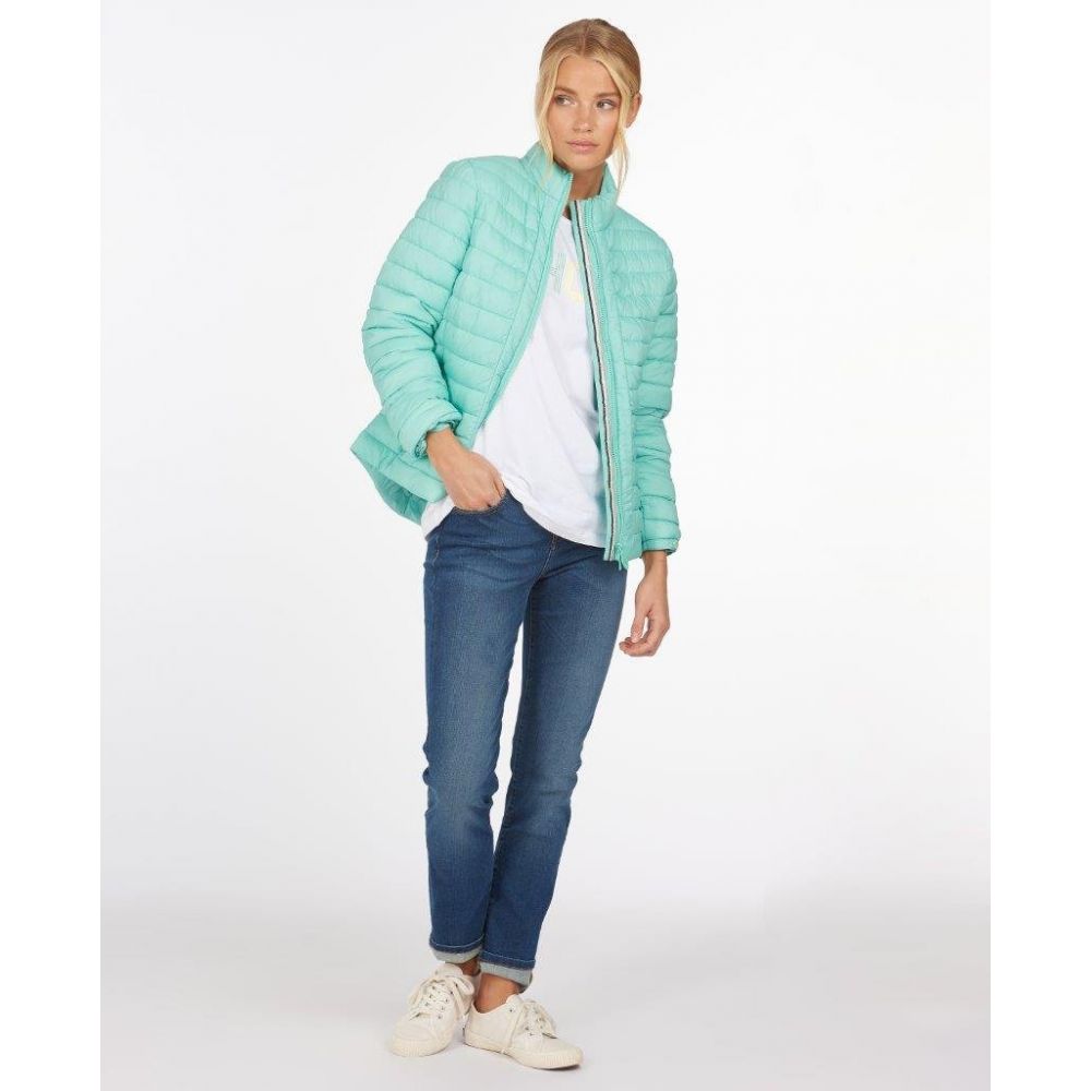 Product ID: LQU1286Offered in two beautiful seasonal colours, this Ladies Runkerry Quilt is sure to brighten any morning walk. Offering lightweight warmth with contemporary styling, this classic baffle-quilted jacket is a versatile piece that can be styled with any outfit. Detailed with a curved back hem, front panel detail and elasticated cuff tabs, it's finished with a Barbour logo tab to the left sleeve.