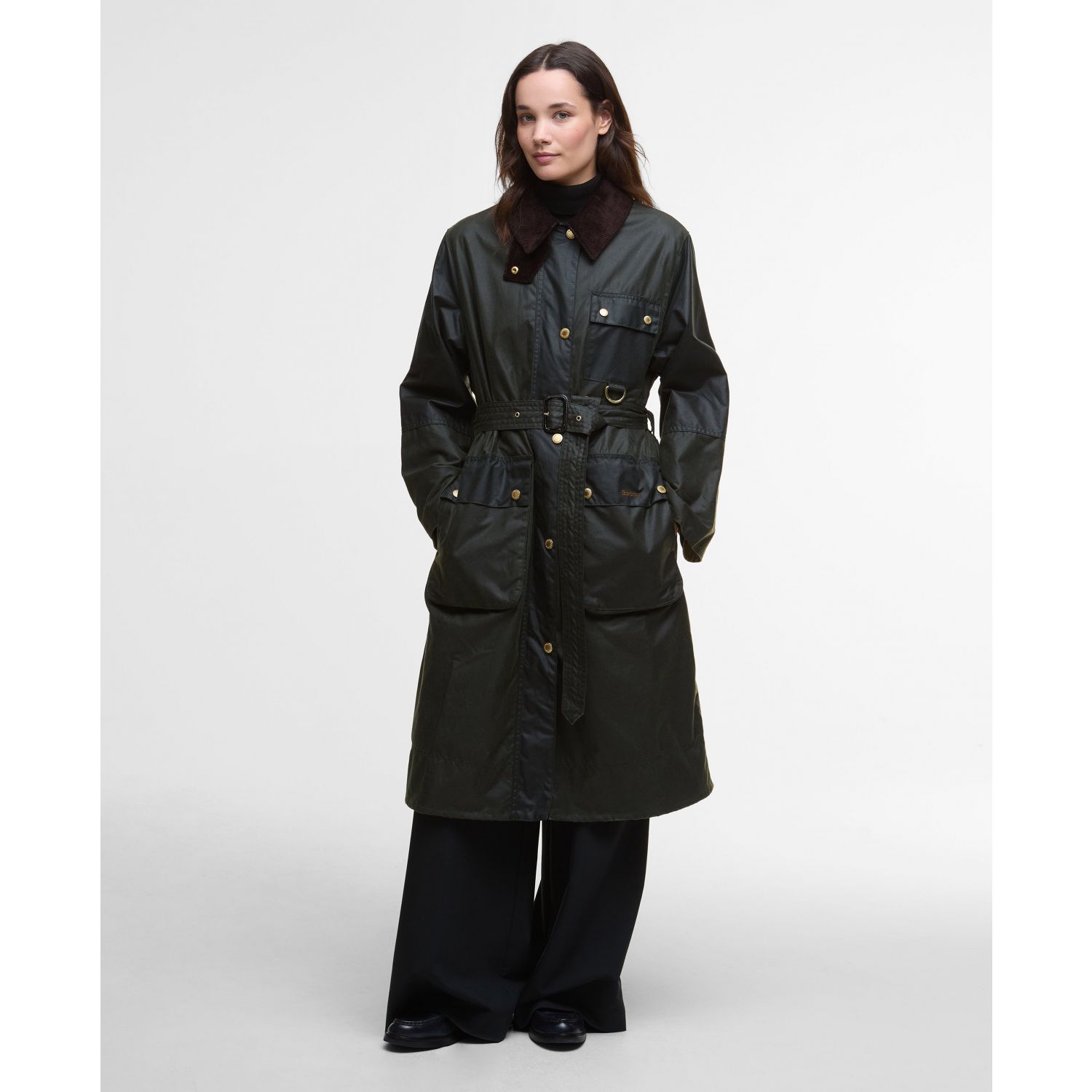 Product ID: LWX1486Inspired by the Solway jacket which was first introduced into our waxed jacket range in 1960, the Barbour Milda Waxed Trench Coat gives this best-selling silhouette a contemporary new look. Detailed with colour block patches of wax, studded plackets and our signature cord collar, this style is finished with a belted waist to allow you to customise your look.