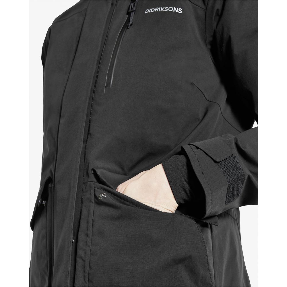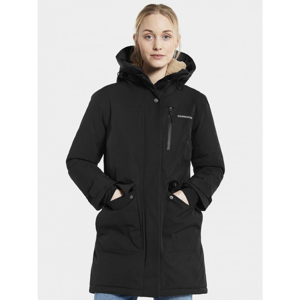 Product ID: 504306DIDDidricksons Ciana jacket is a classic, padded parka with a sporty look for everyday use. It has a cosy sherpa pile on the inside back and hood giving comfort and warmth. It is fully windproof and waterproof with taped seams and has a regular fit with a figure-shaped silhouette. This jacket is full of practical design features, including fully adjustable sleeves and waist, two buttoned front pockets, one inner mesh pocket and a reflective strap to fold out of the front pocket when needed. If you’re looking for a warm winter coat then you won’t be disappointed!
