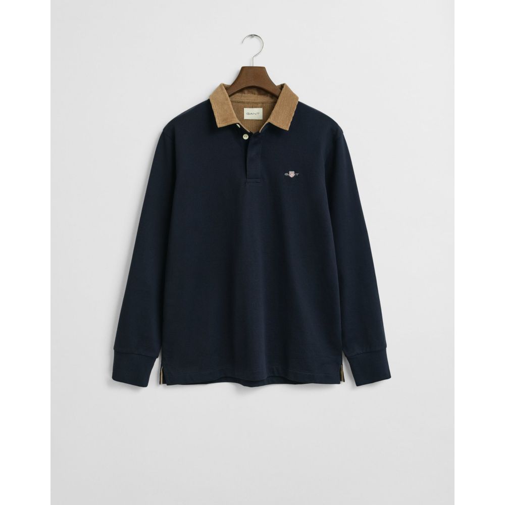 Product ID: 2065070This iconic heavy rugger is cut for a regular fit and crafted from 100% cotton. Offset with a corduroy collar in a contrast colour, this rugger is detailed with a buttoned placket, ribbed cuffs and side hem slits. Other design elements include branded rubber buttons and a GANT shield graphic embroidered at the chest.