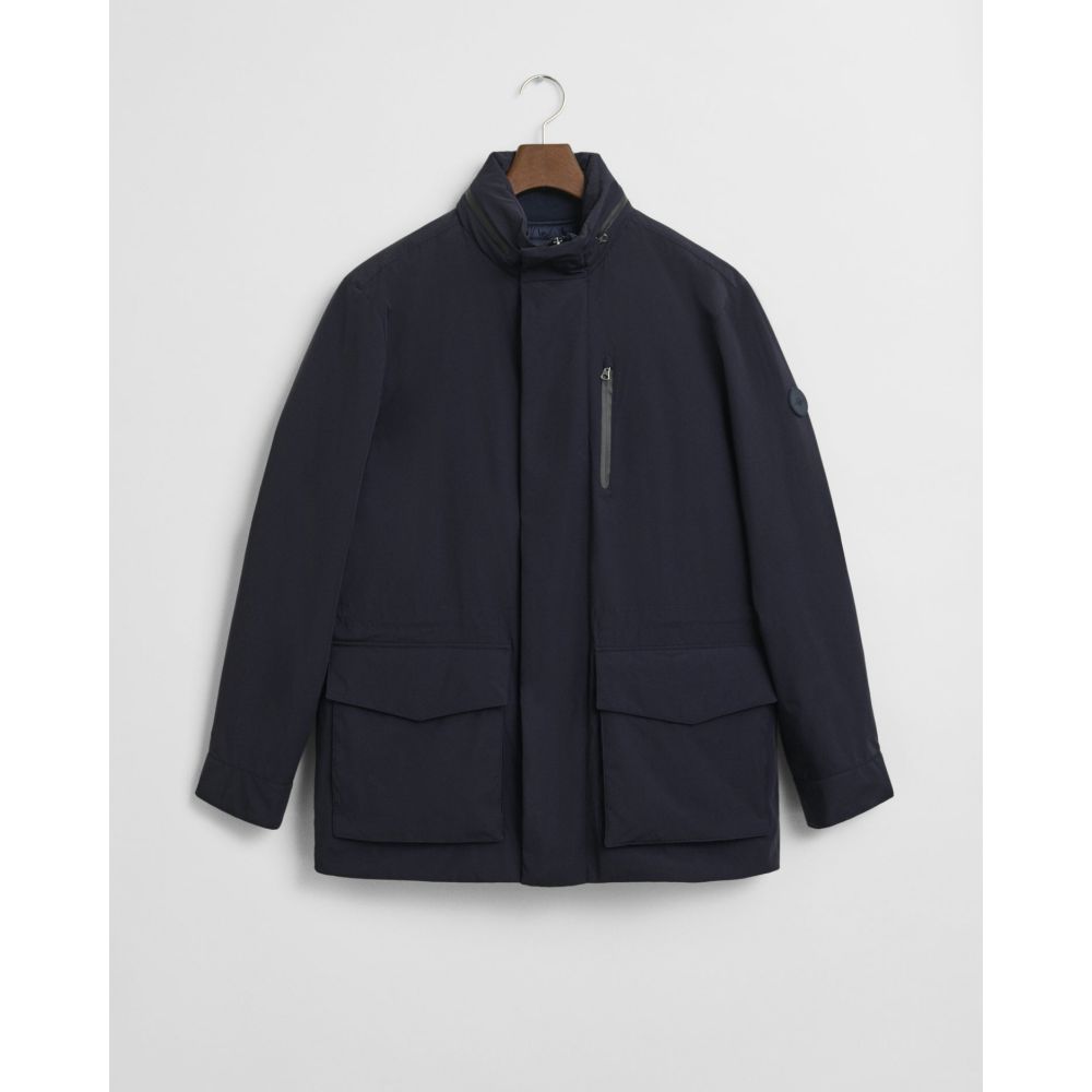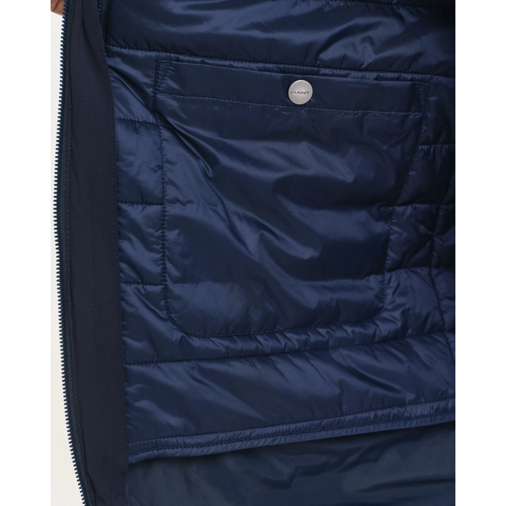 Product ID: 7006553This mid-length jacket is an essential for the winter season. The padded silhouette features a double-decker design with zip closure covered by the placket, a stand collar and an emergency hood. Designed for a regular fit, the design is further detailed with a zip pocket at the chest, lower patch pockets and a rubber GANT badge at the sleeve. Comfortable and versatile, the interior is fully lined and features a detachable vest and two additional pockets.