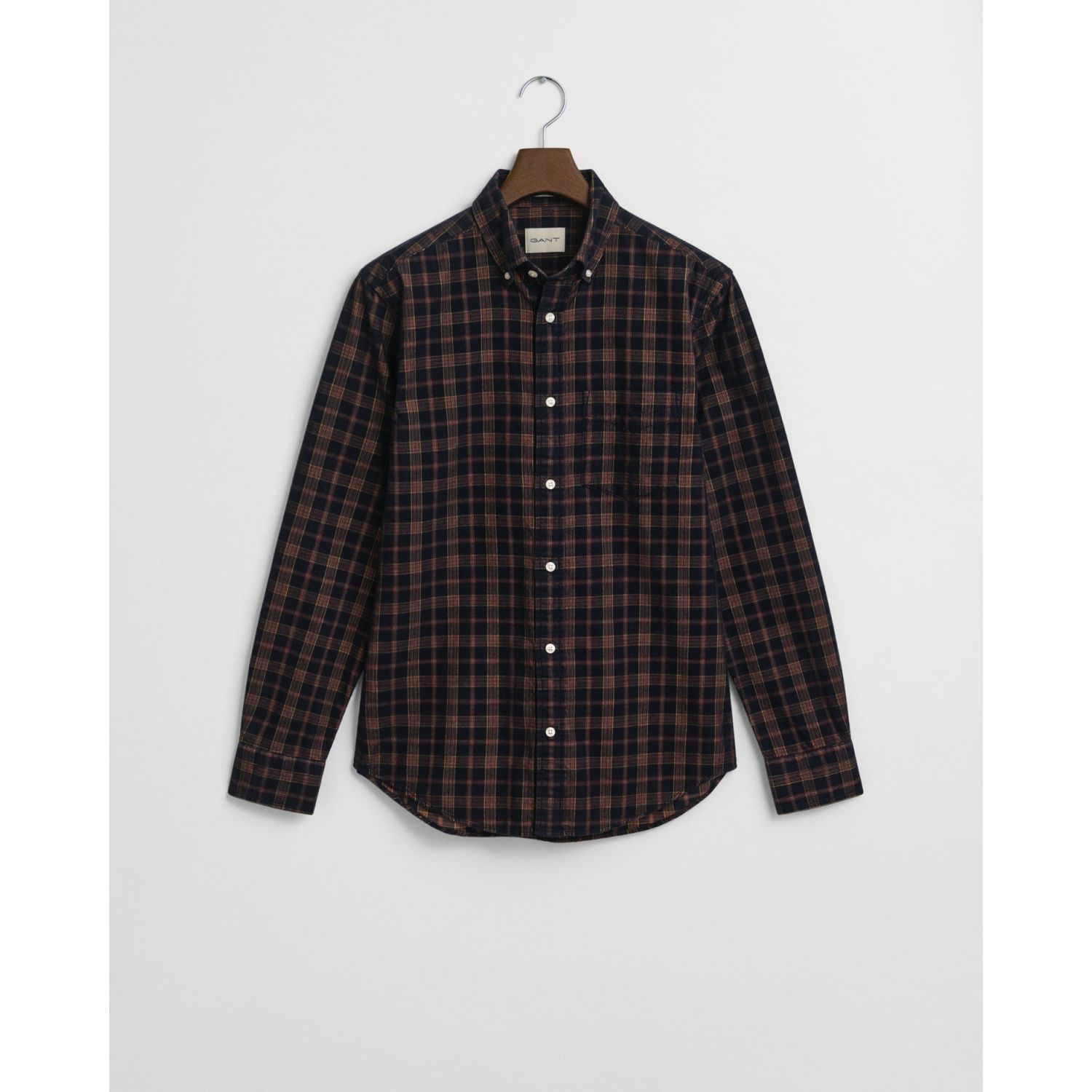 Product ID: 3250231This regular fit shirt, made from high-quality corduroy with a yarn-dyed checked pattern, is perfect for the changing seasons. It features a button-down collar, adjustable sleeve cuffs, and a curved hem. The shirt is finished with recycled polyester buttons, a box pleat, and a locker loop at the back. Additionally, it showcases the GANT logo embroidered on the chest pocket.