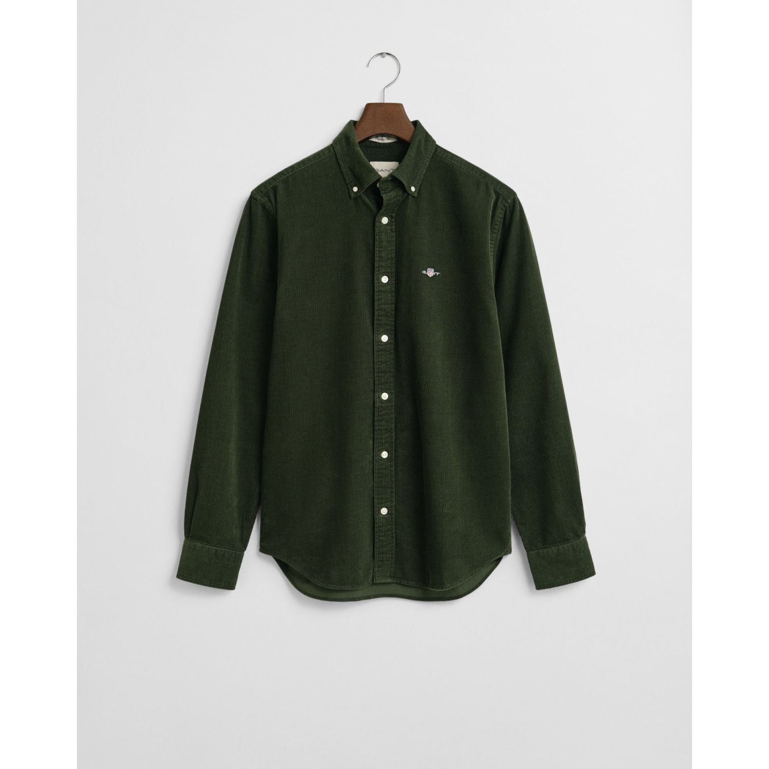 Product ID: 3250351This regular fit shirt, made from premium cotton corduroy fabric, is perfect for the changing seasons. It features a button-down collar, adjustable sleeve cuffs, and a curved hem. The shirt is finished with recycled polyester buttons, a box pleat, and a locker loop at the back. Additionally, it showcases the GANT archive shield graphic embroidery.