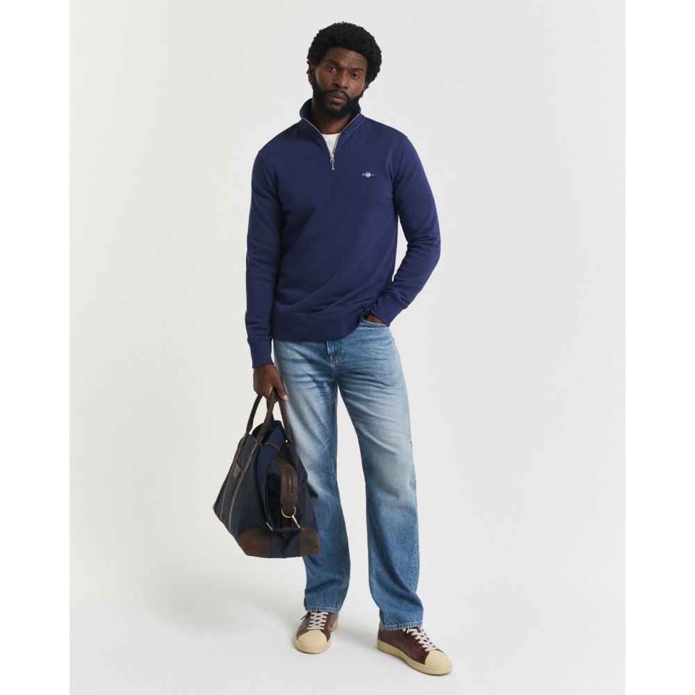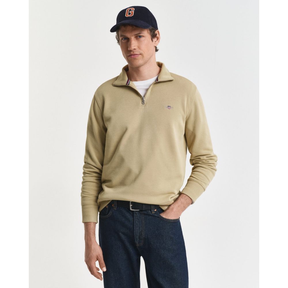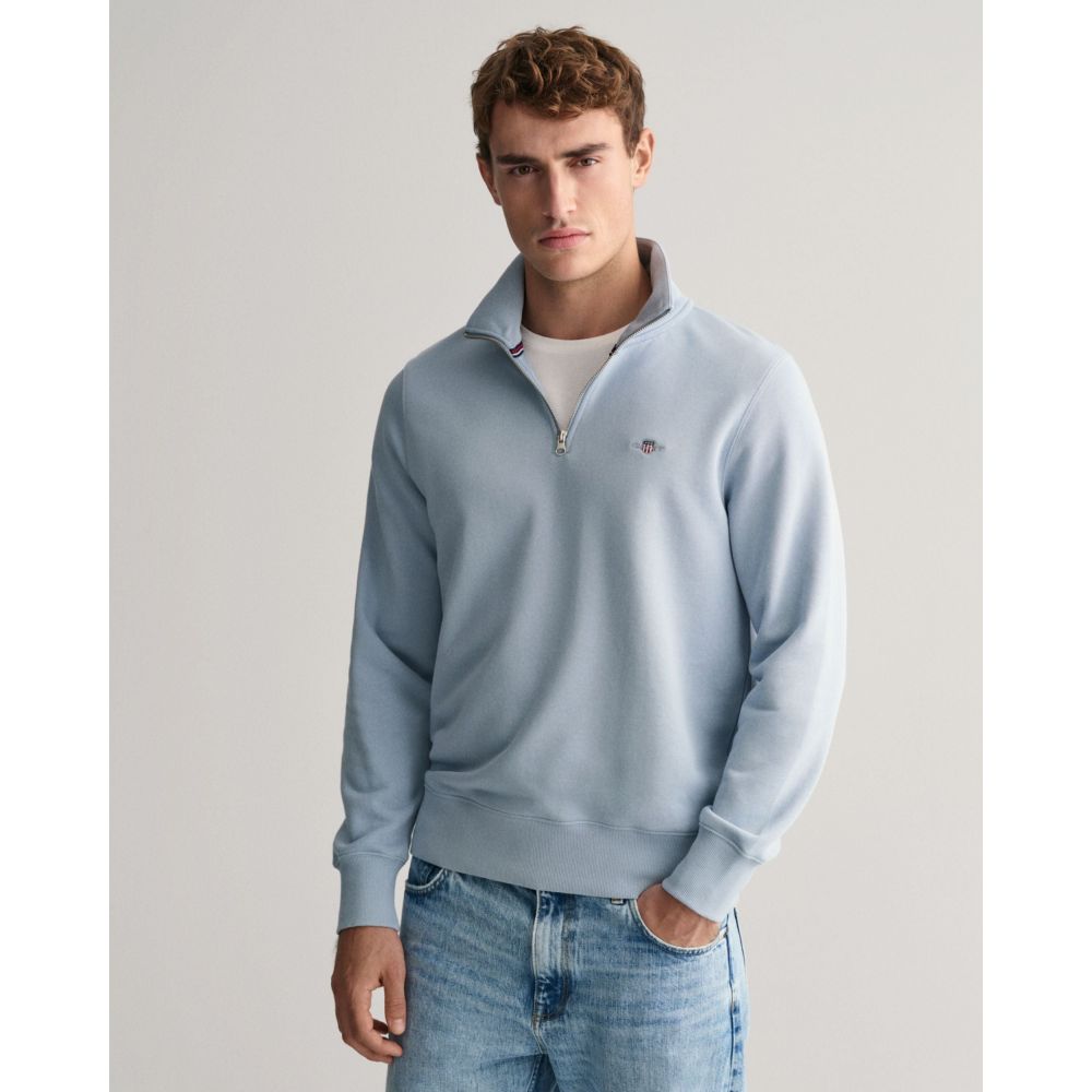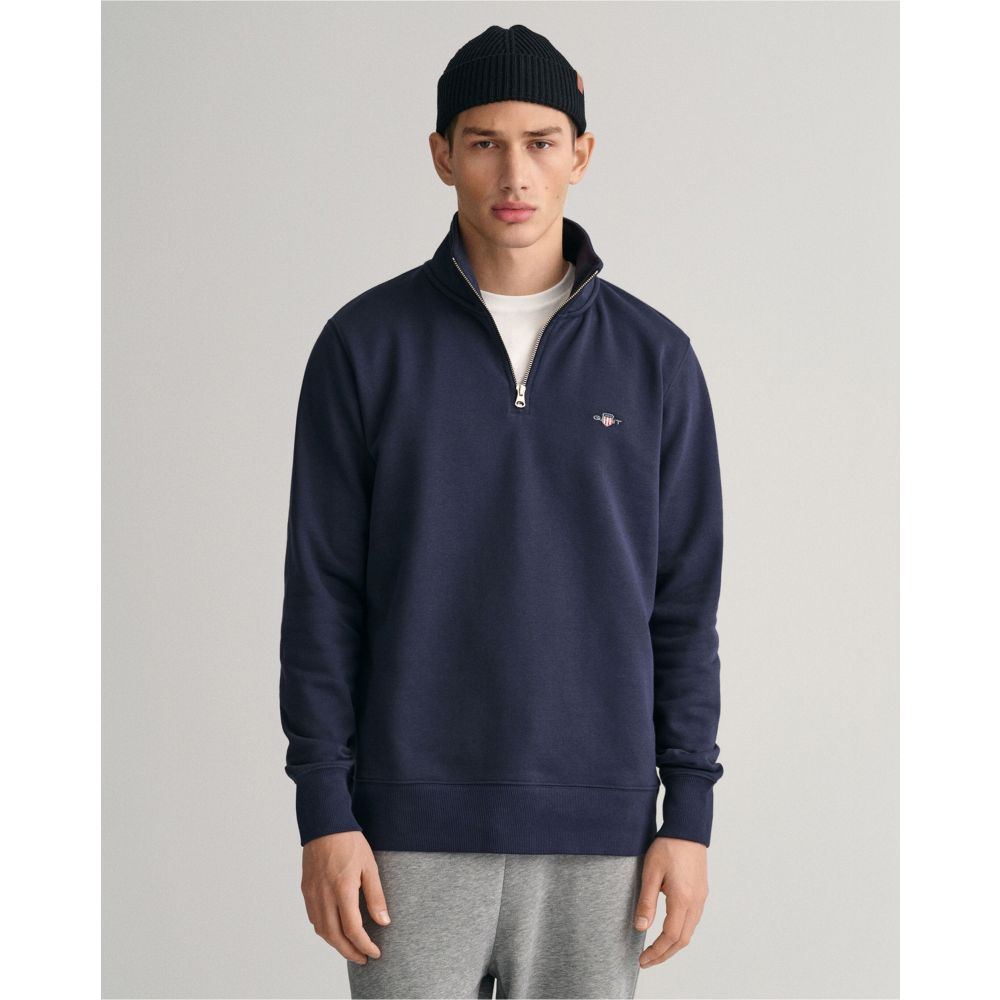 Product ID: 2008005Featuring a small-scale shield graphic embroidered at the chest, this half-zip sweatshirt is detailed with soft ribbing at the hem and cuffs for a fitted silhouette. Made from a cotton-polyester blend, this durable sweatshirt can be worn as an outer layer in late summer evenings or on crisp autumn mornings.
