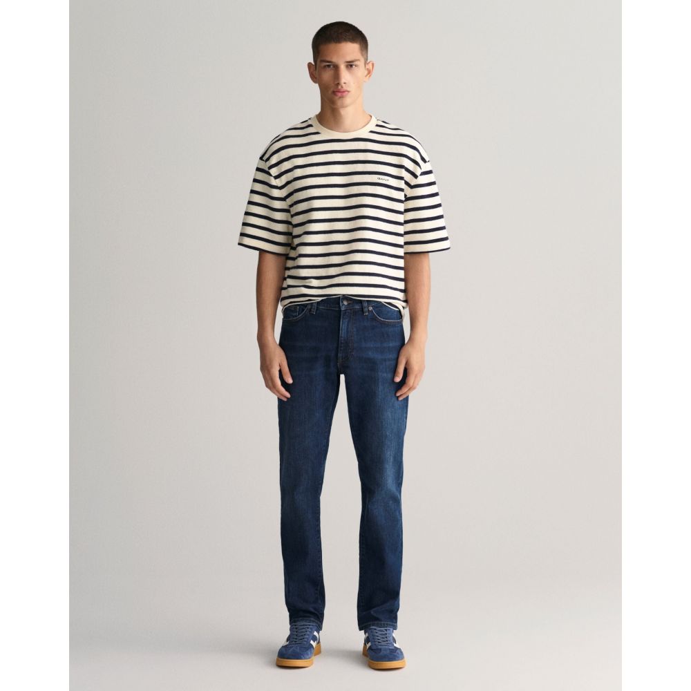 Product ID: 1000260Crafted in a cotton blend with a hint of stretch, these Gant jeans are cut in a slim fit for a contemporary style. Pre-washed for a worn-in feel, pair them with a blazer and sneakers for a smart-casual look.