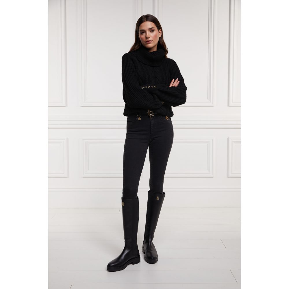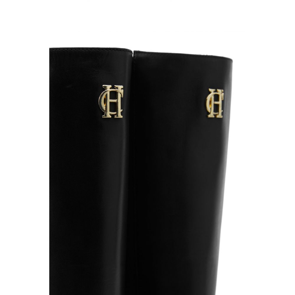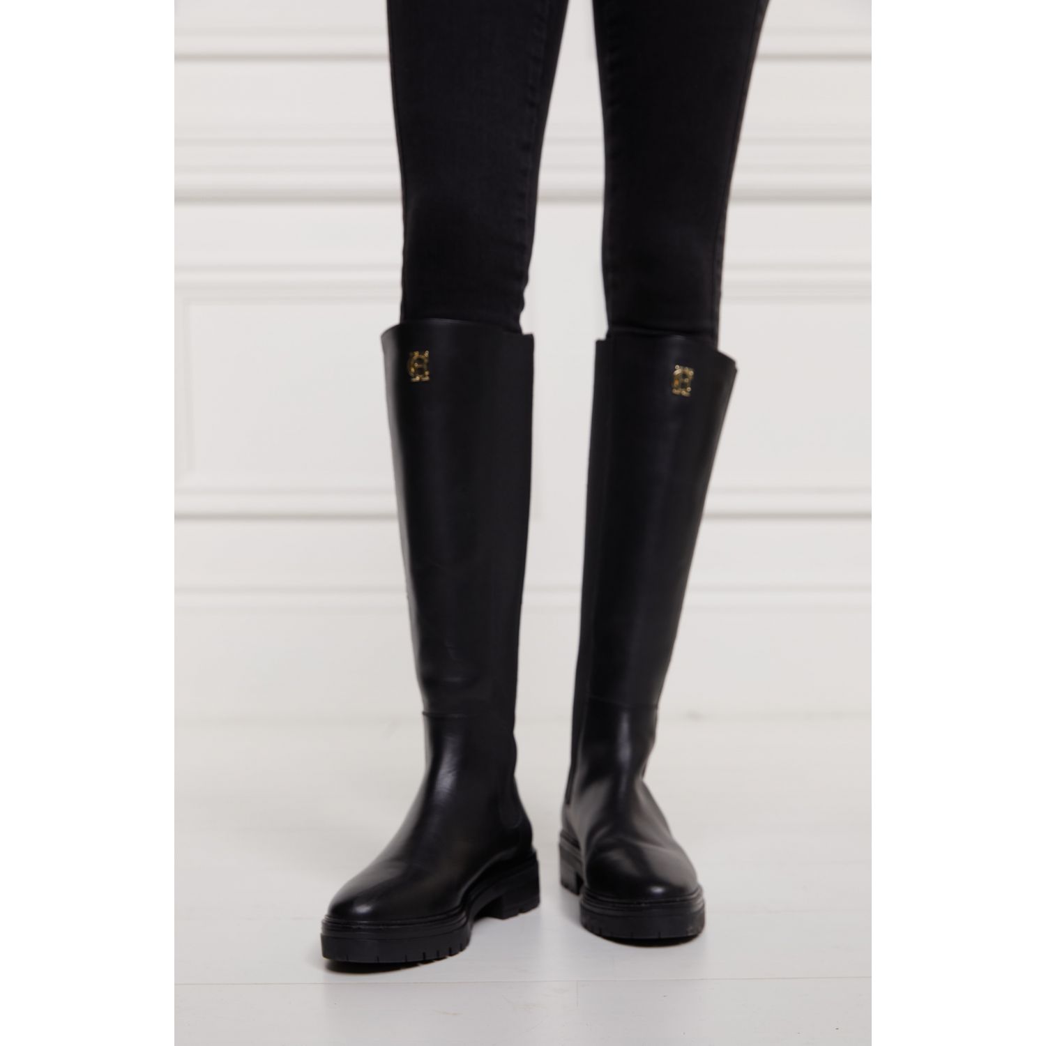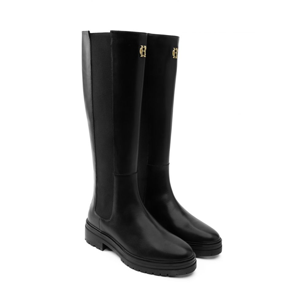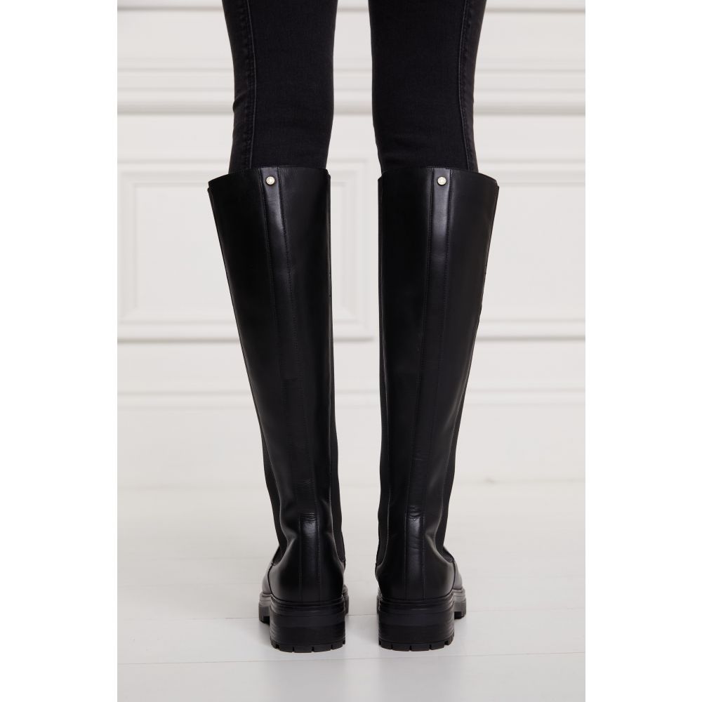 Product ID: 16096223246604-5The epitome of minimalist chic, this classic knee boot has been inspired with a subtle touch of our equestrian heritage. Created from a premium leather with matching lining. Designed with a classic almond toe with a chunky tracked sole, this boot ensures a comfortable and stylish wear. Subtly detailed with a delicate HC pin.