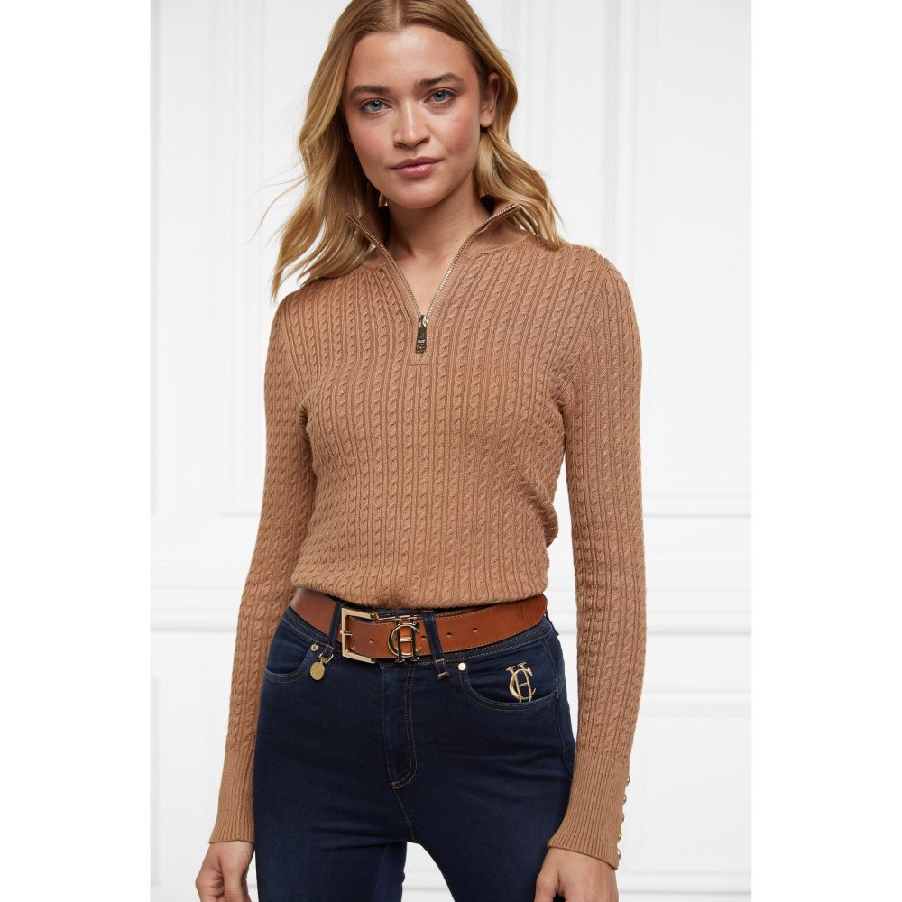 Product ID: 21400124127508Crafted from a luxurious super soft yarn, this jumper ensures a sumptuously cosy feel against your skin. With an intricate cable design with a slim silhouette, the monogrammed Henley zip offers versatility in styling. Beautifully elevated with gold hardware on the cuffs.