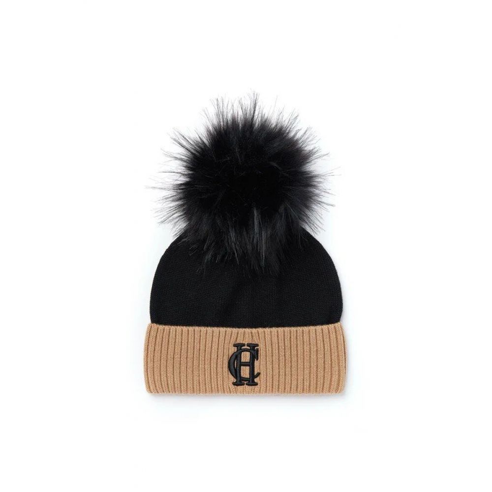Product ID: 91100225049604-OSA new addition designed to perfectly complement our Lightweight Monogram Scarf Collection. Crafted in classic camel and black, this hat features high build embroidery for a refined touch. The chunky ribbed cuff adds both style and warmth, making the Chelsea Marino Bobble Hat a versatile and elegant accessory for your winter wardrobe.