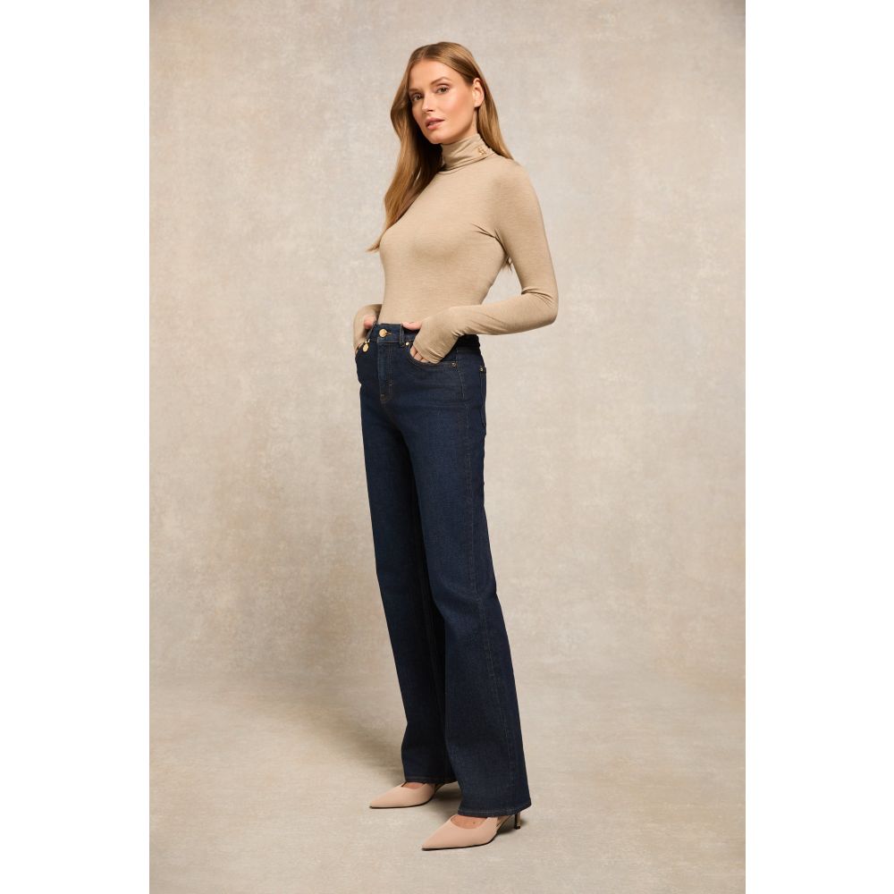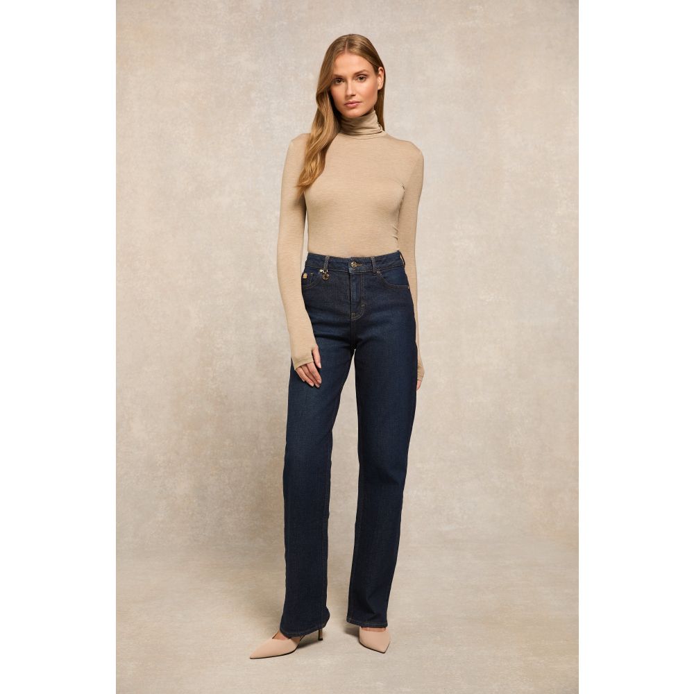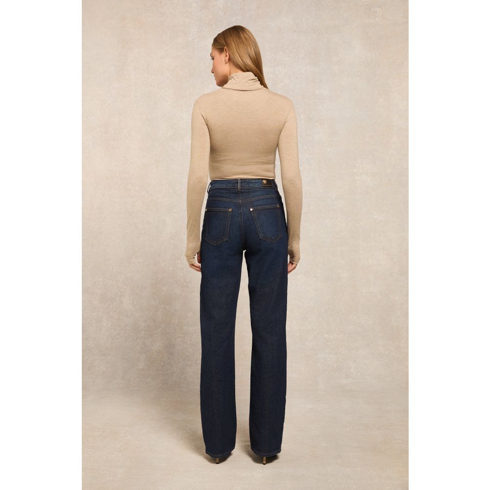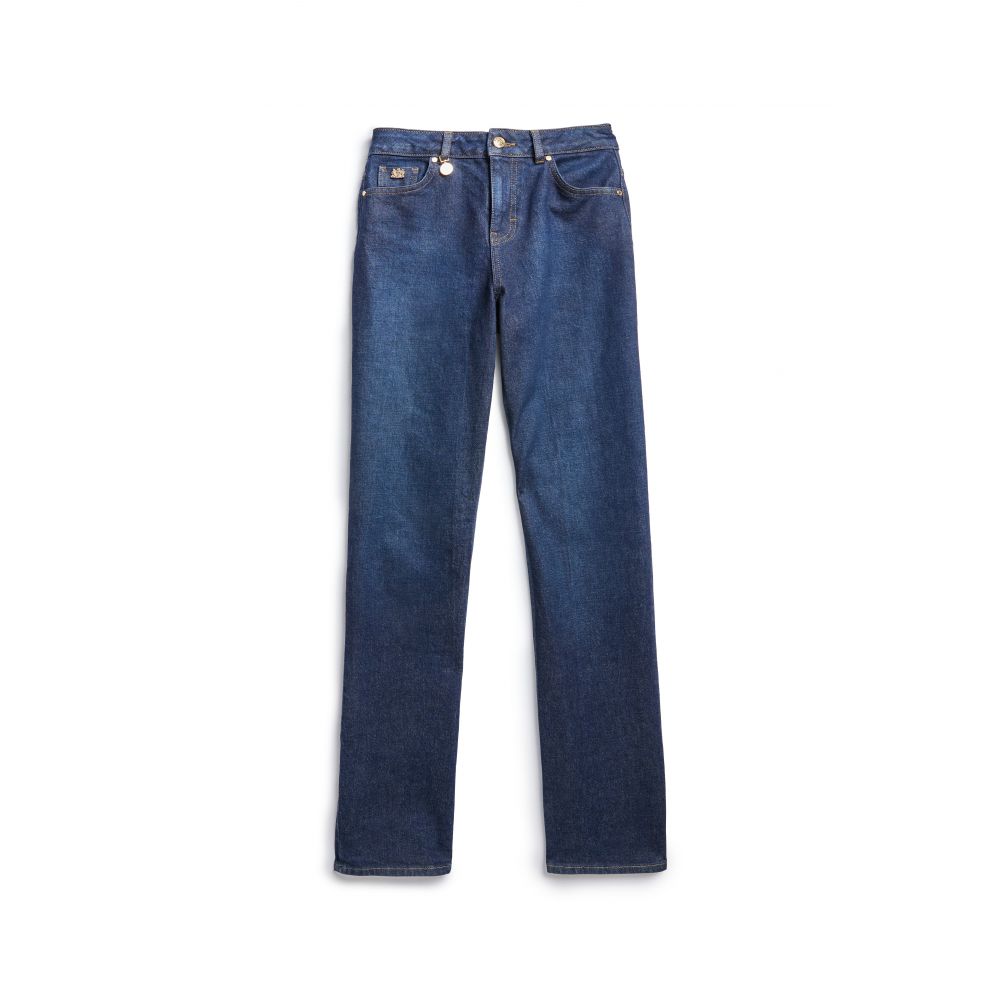 Product ID: 61500125031700These jeans feature classic five-pocket styling and a single-shank waistband closure, ensuring a secure and comfortable fit. Adorned with signature gold hardware, they boast a high-rise design that accentuates them beautifully. Crafted for elegance, the jeans offer a long, straight leg with an outward seam for a retro-inspired silhouette. The leg width strikes the perfect balance - not too wide, not too slim - delivering a vintage feel with modern comfort. Whether you dress them up or down, these jeans are a versatile staple that exudes effortless style.
