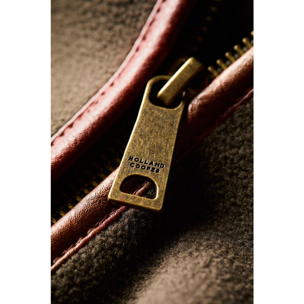 Every detail of this jacket tells a story of craftsmanship and heritage. The HC embroidery on the chest and woven tab to the side seams are subtle nods to their dedication to quality. The faux leather back D-yoke adds a touch of refinement, while the quilt stitch detail to the collar elevates the design, making it uniquely yours. The antique brass metal finishes adds a vintage charm that complements your every move.
