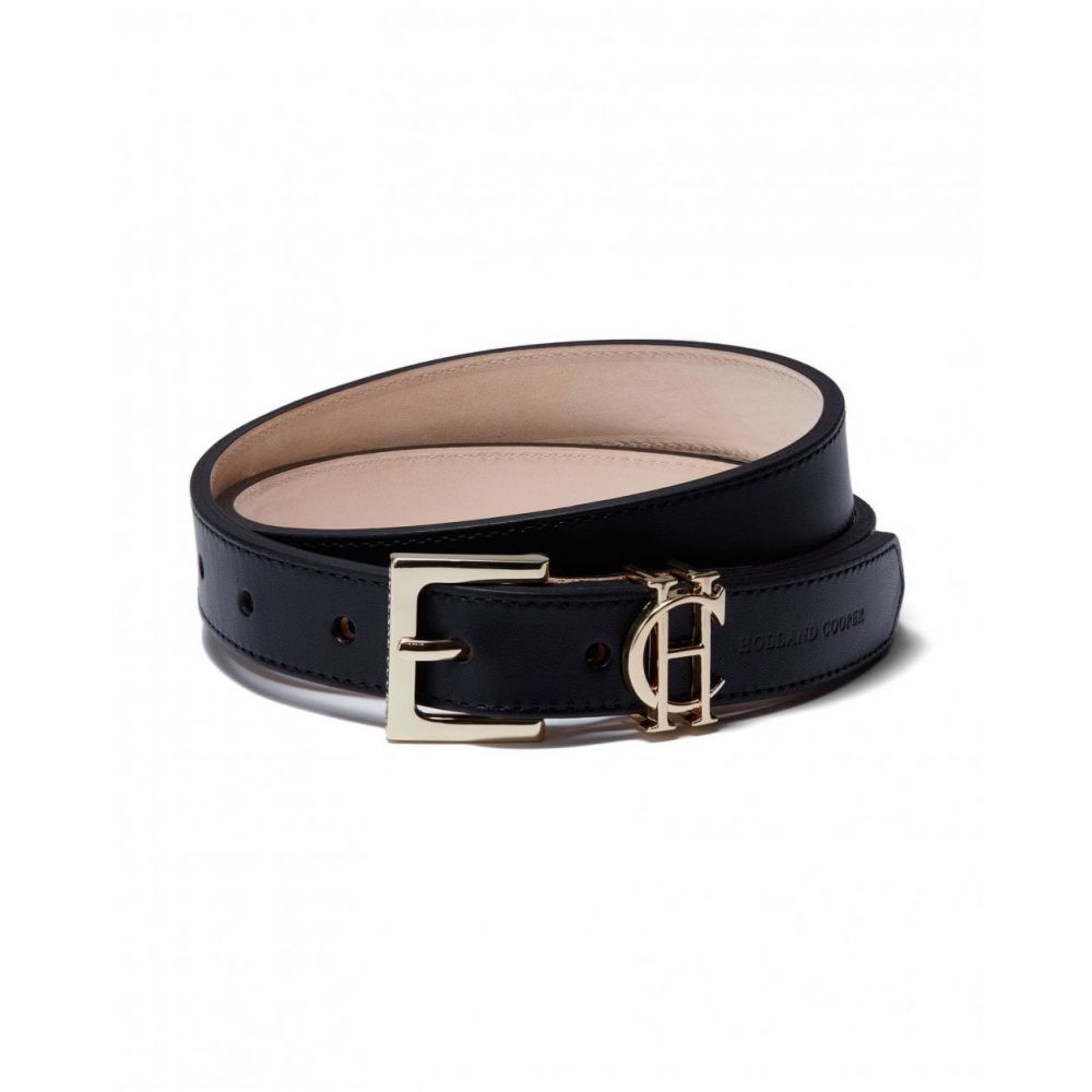 Product ID: 15079122023604Delicately handmade in the UK, this Holland Cooper Slim Logo Belt has been designed with a slim width from a soft grain leather. With a branded gold HC buckle and HC embossing to the strap, this belt is ideal for adding a luxurious touch to any outfit.