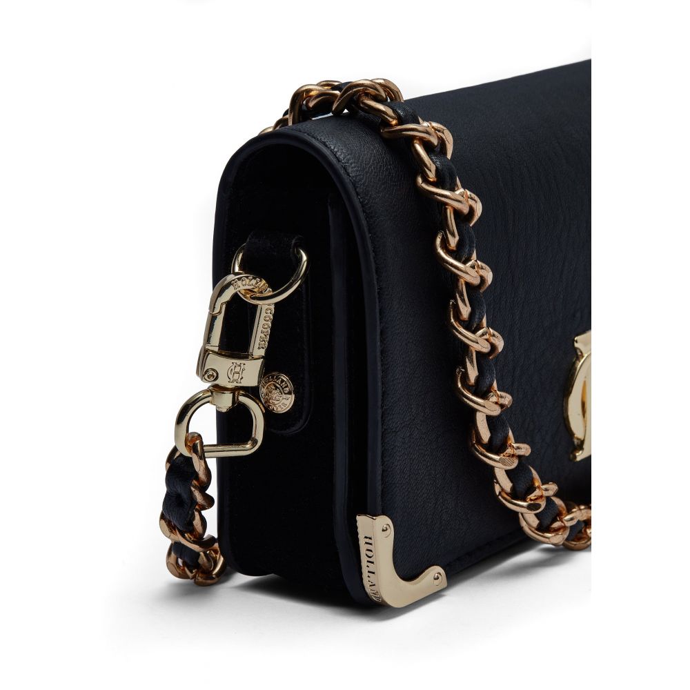 - Detachable gold chain crossbody strap