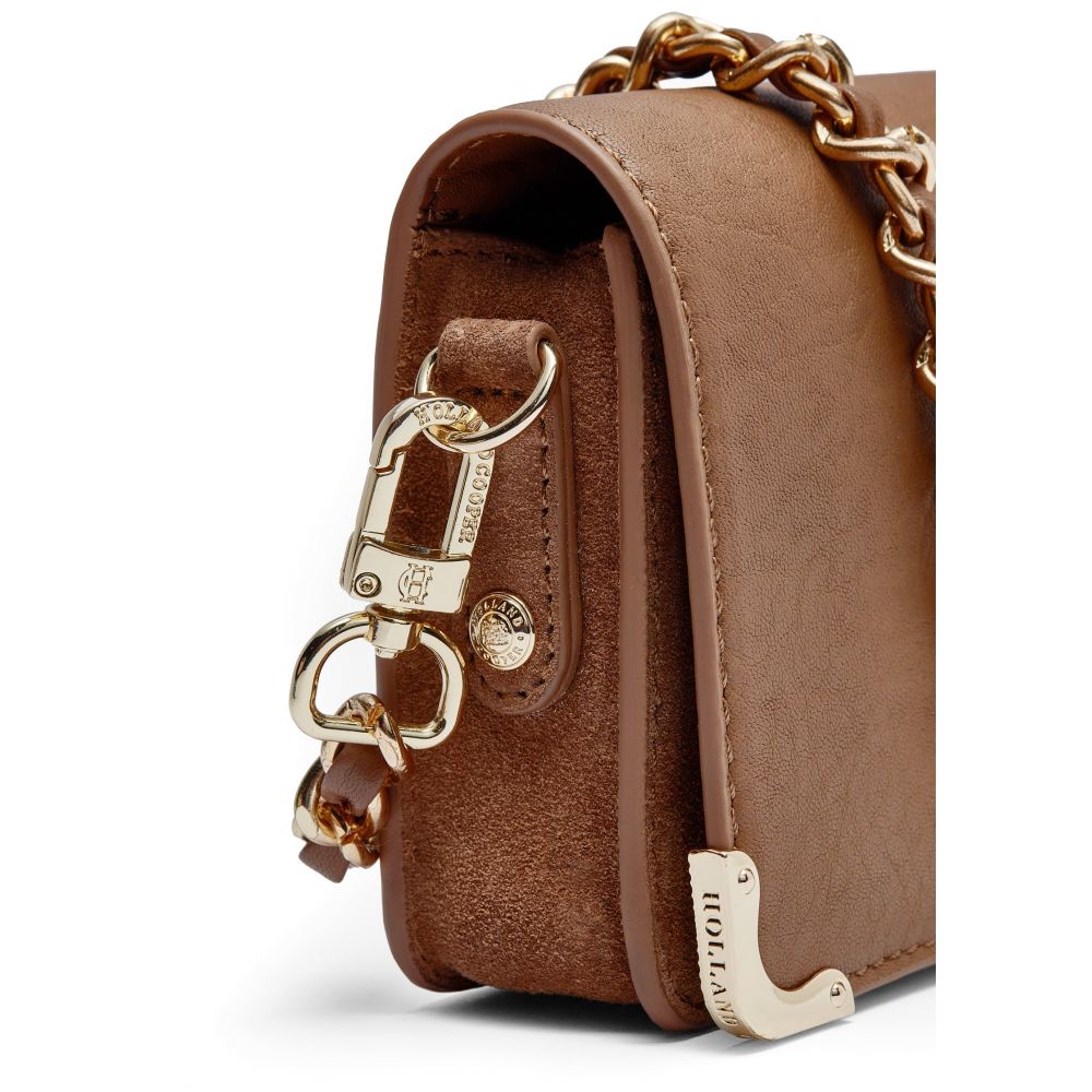- Detachable gold chain crossbody strap