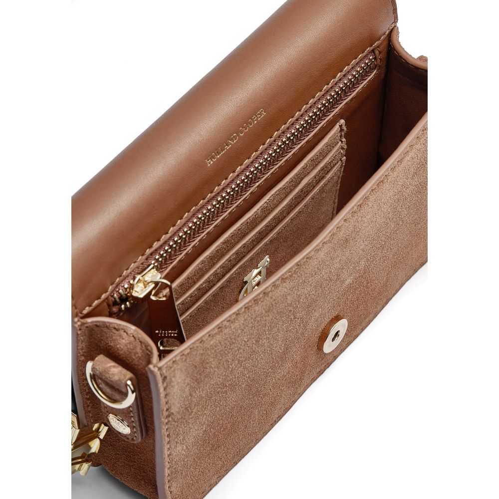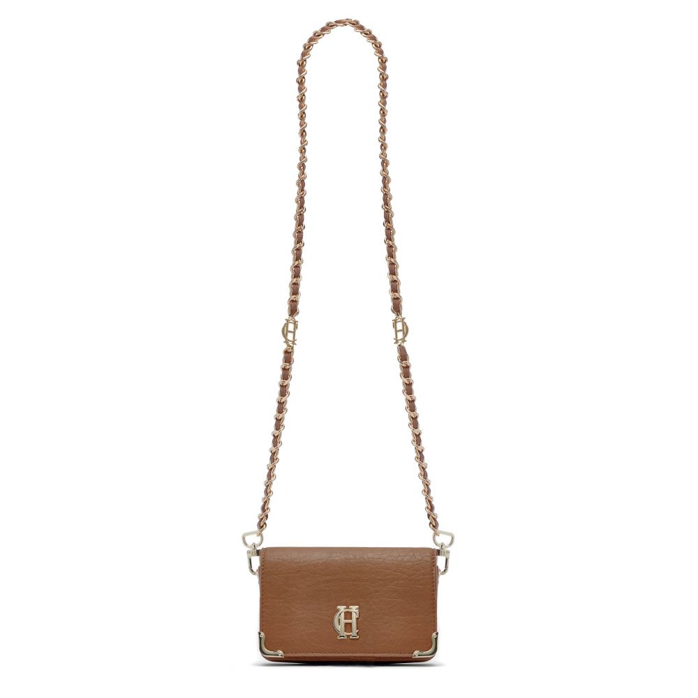 Product ID: 81300124251919-OSHandcrafted from the finest textured leather with a luxurious suede interior, this piece has been cleverly designed with a detachable chain strap so you can carry it as a clutch or drape it over your shoulder. With a petite construction, this feminine bag has been crafted with elegant, curved corners and elevated with their signature gold hardware. Finished with a magnetic closure and iconic HC monogram.