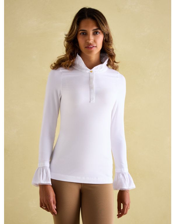 Product ID: 12544222214940Created from a flawless and smooth fabric for a second-skin feel, this Holland Cooper Lilibet Jersey Tee has been designed to become an everyday essential in your wardrobe. Designed with a body-contouring fit with a pretty ruffle neckline and cuffs, this piece is both flattering and elegant. Detailed with HC rivets on the shoulders.