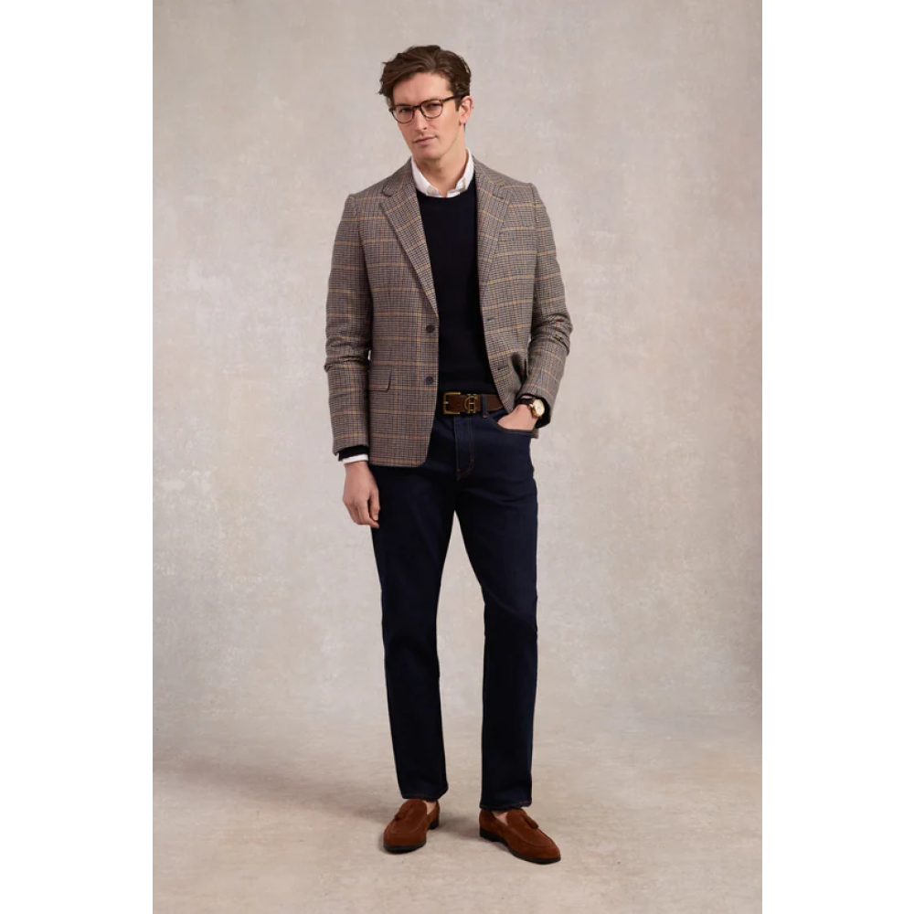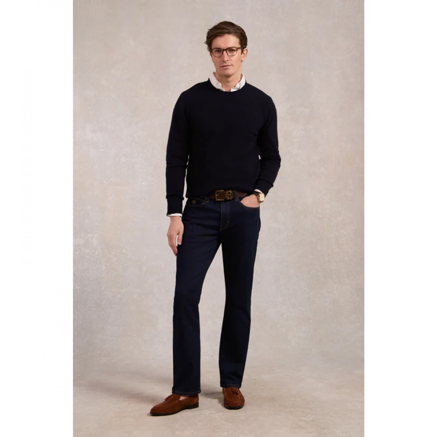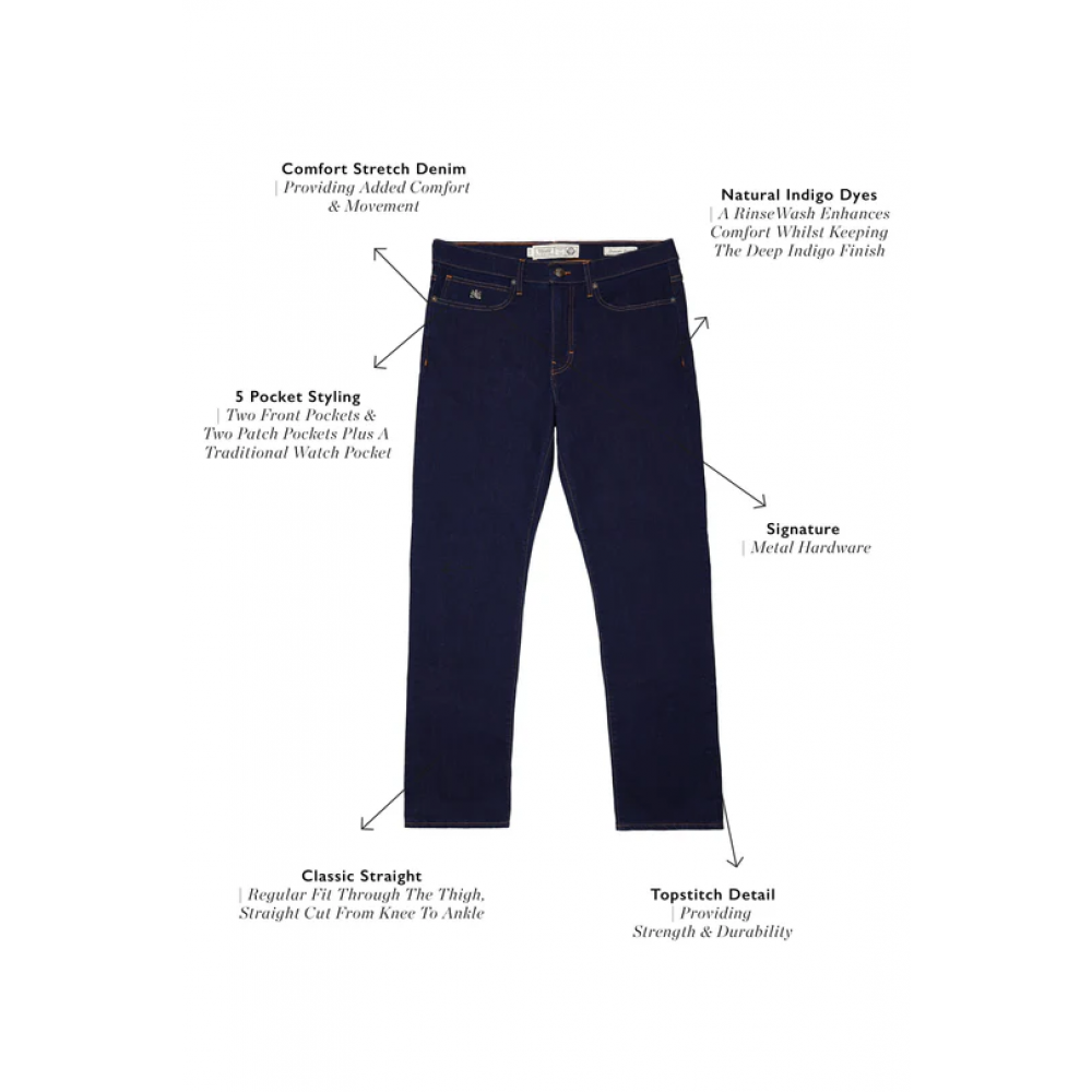 Product ID: 15410123032327Introduce the Men’s Classic Straight Jean to elevate your wardrobe, where timeless design meets modern comfort. Crafted from our premium stretch cotton, these jeans are the epitome of versatile style. With a refined classic silhouette, our jeans feature a mid-rise fit that sits perfectly below the waist. The traditional five-pocket styling, enhanced with the bespoke HC hardware adds a touch of luxury to this wardrobe staple.