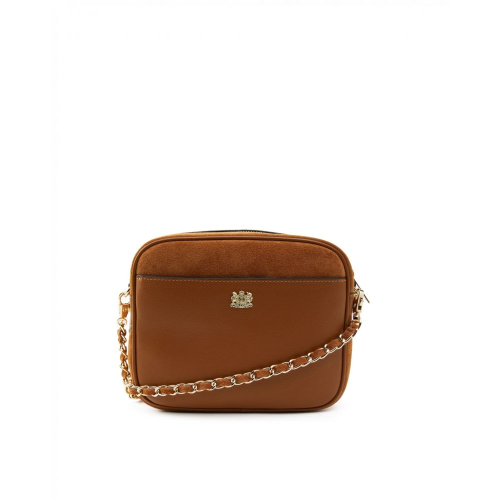Product ID: 15078223240440-OSDesigned with a classic camera bag shape from premium suede with leather detailing, this Holland Cooper Soho Camera Bag has been created with a sleek compact profile for ensuring your valuables are kept safe. Featuring an elegant chain shoulder strap with Holland Cooper trim and bold Holland Cooper logo to the front.