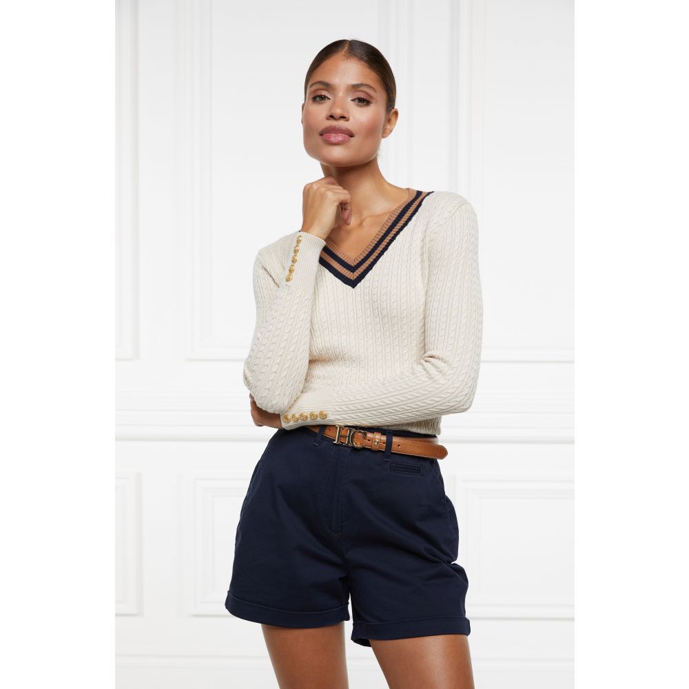 Product ID: 10520225001698A fresh update on a signature silhouette, the Zoe Quarter Zip Knit returns this season in an all-new colourway. Crafted with a classic cable knit texture, this piece combines heritage charm with contemporary style. Featuring subtle branded embroidery on the left chest and contrast tipping on the collar, the quarter zip neckline offers effortless layering and a sporty edge. A versatile knit that’s both timeless and transitional, perfect for elevating your everyday wardrobe.