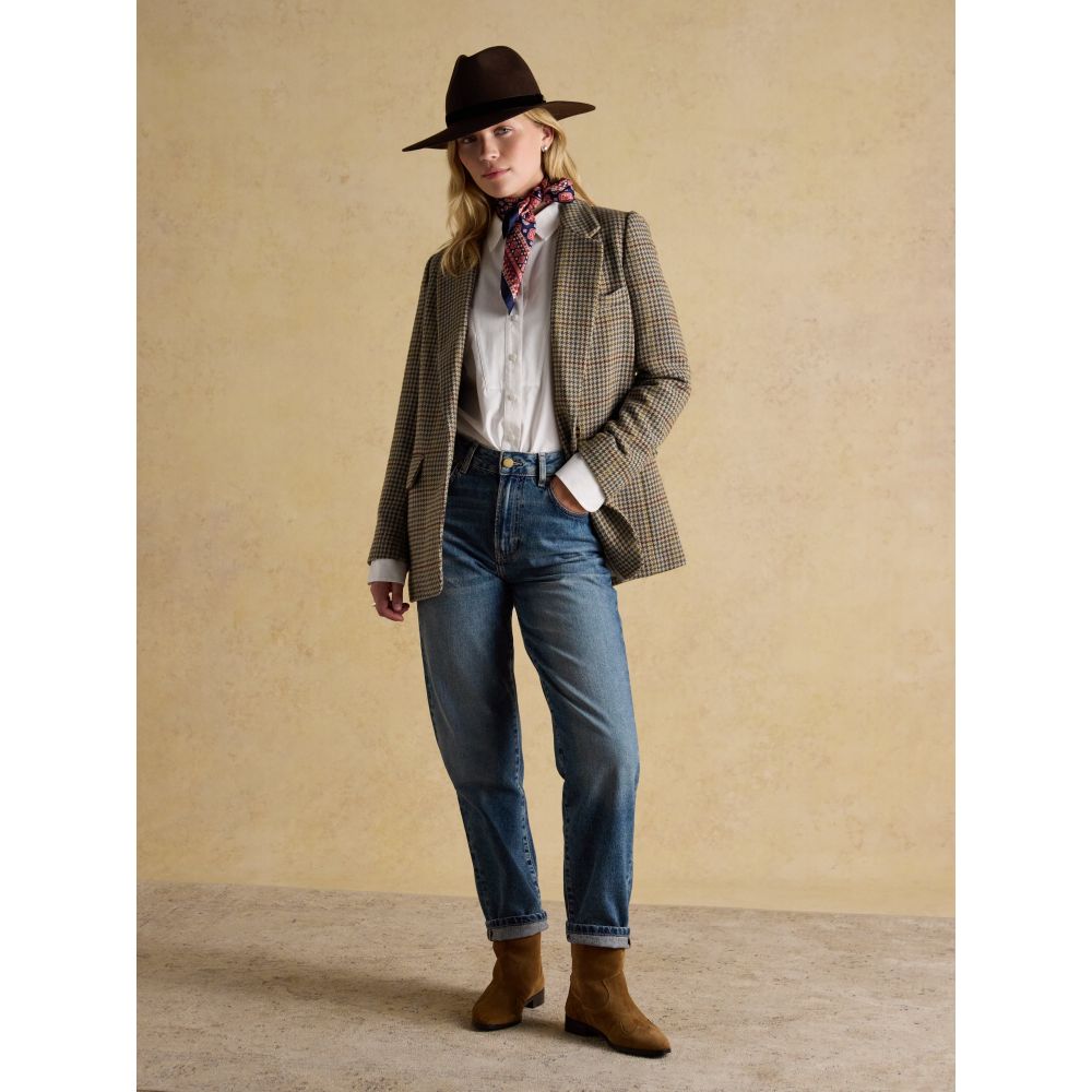 - Hackmore Grey Check Relaxed Fit Tweed Wool Blend Blazer