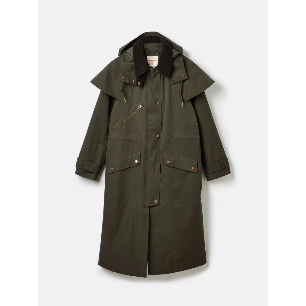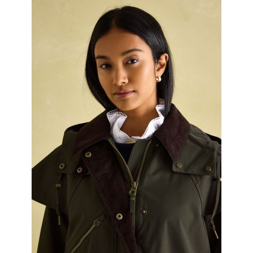Product ID: JOULES-HIGHBRIDGEWith a waterproof dry wax coating, and corduroy details and finished with a regal exaggerated cape, this countryside-inspired coat is designed for outdoor pursuits.