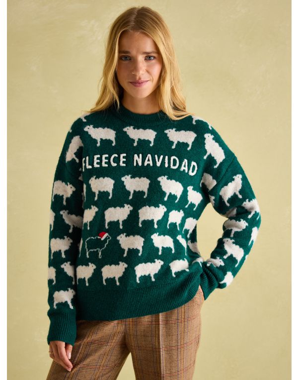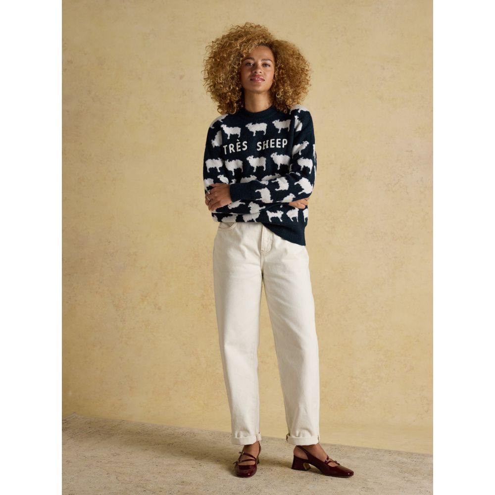 - Intarsia Knitted Tres Sheep Relaxed Fit Jumper with Crew Neck