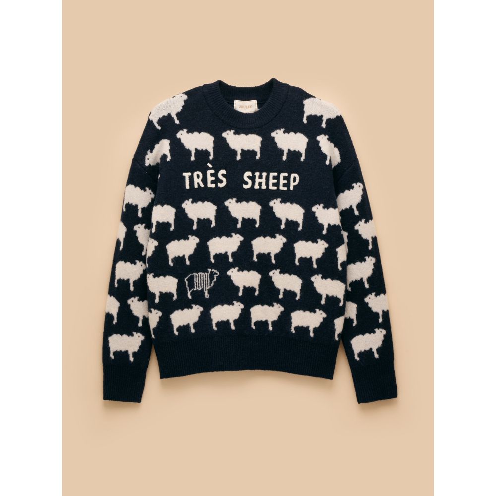 Product ID: JOULES-TRES-SHEEPA statement knit is always needed in everyone's wardrobe and ours provides a fun aesthetic and top-quality craftsmanship. Designed to a relaxed fit, this piece features dropped shoulders, a tubular crew neck and deep ribbed trims. It's finished with a boucle embroidered slogan and an intarsia knit pattern that adds a real flair.
