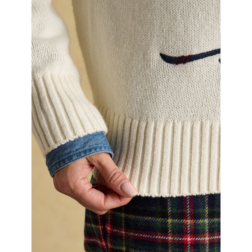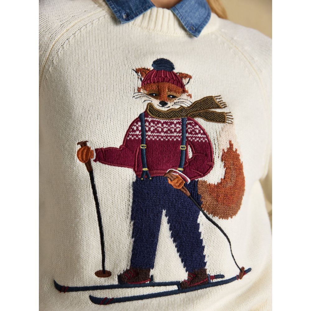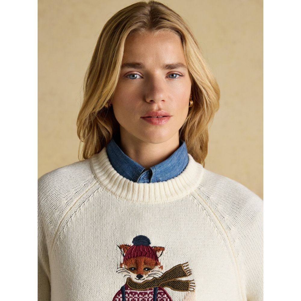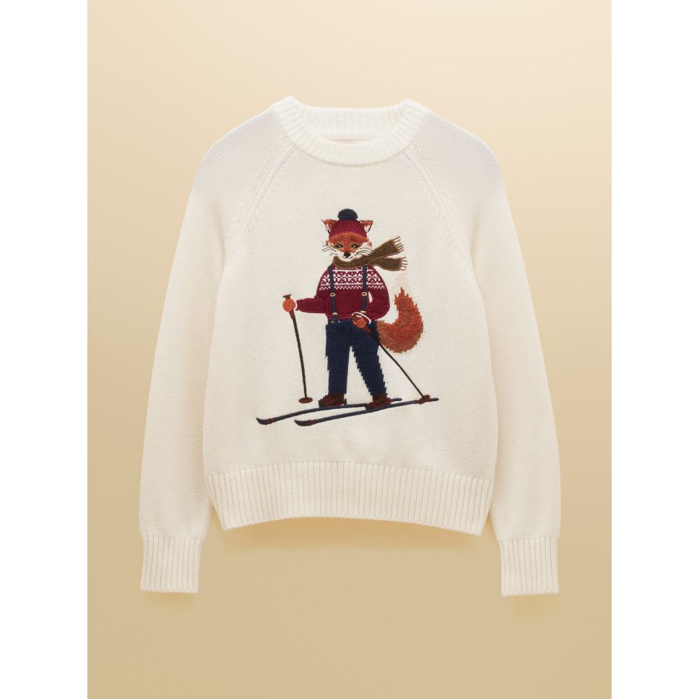 Perfect for the season, to the front there is an intricate intarsia of our Jonty fox with appliqué and embroidered detailing. Pair with jeans, cords or pretty much anything for an elevated finish.