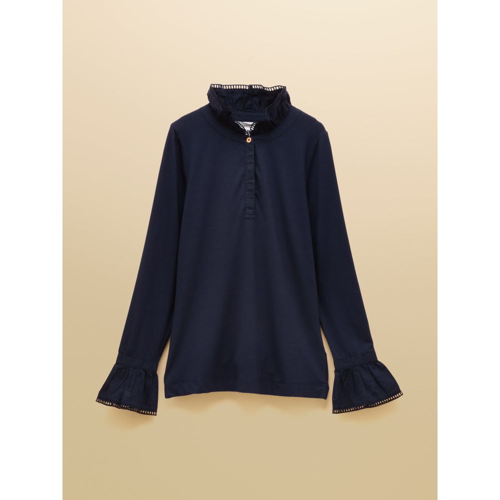 Product ID: JOULES-KATEMake room for stylish layers in your autumn wardrobe with the Kate long sleeve top. It's got a jersey body and sleeves with a slim fit that is perfect for your first layer. A concealed button placket with a single exposed button allows for versatile styling, while a woven frilled neckline adds statement detail that will look great popping out of a knitted jumper. The cuffs feature a matching frilled trim with broderie detailing and a single button fastening. Choose from easy-to-style colours that will pair back with any outfit this season.
