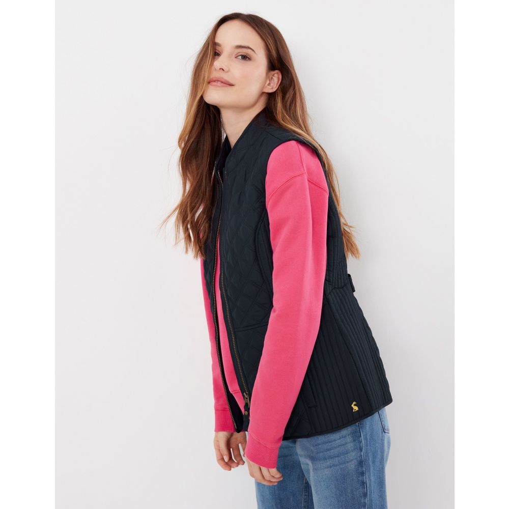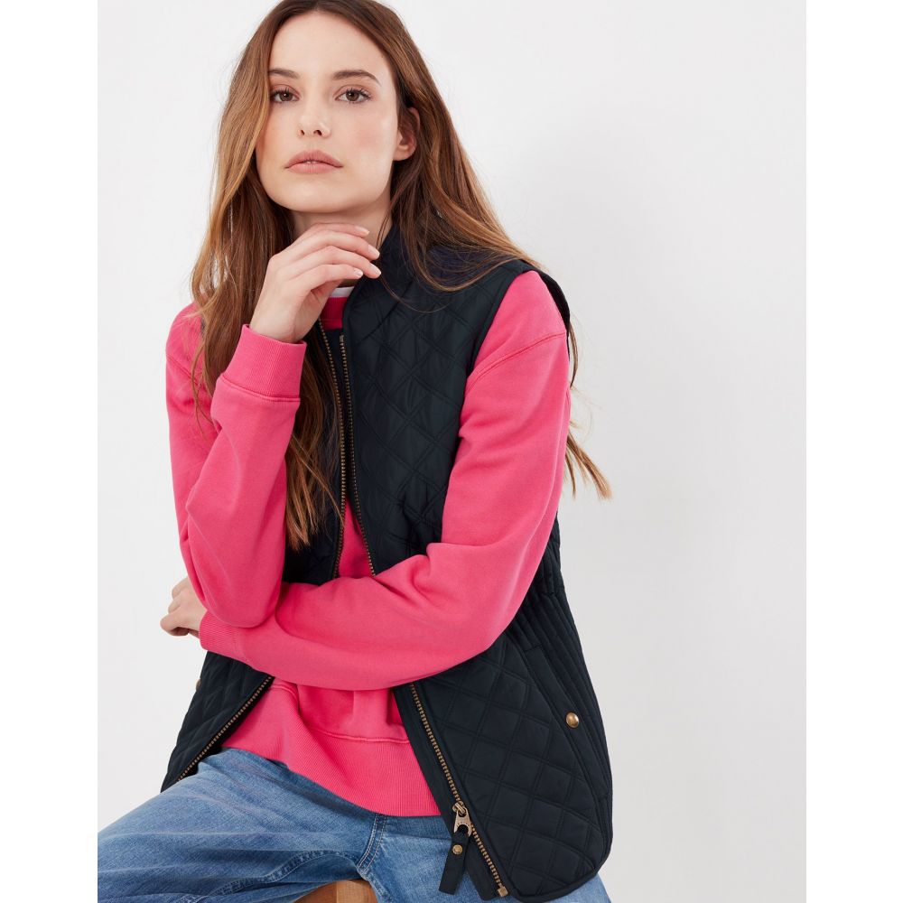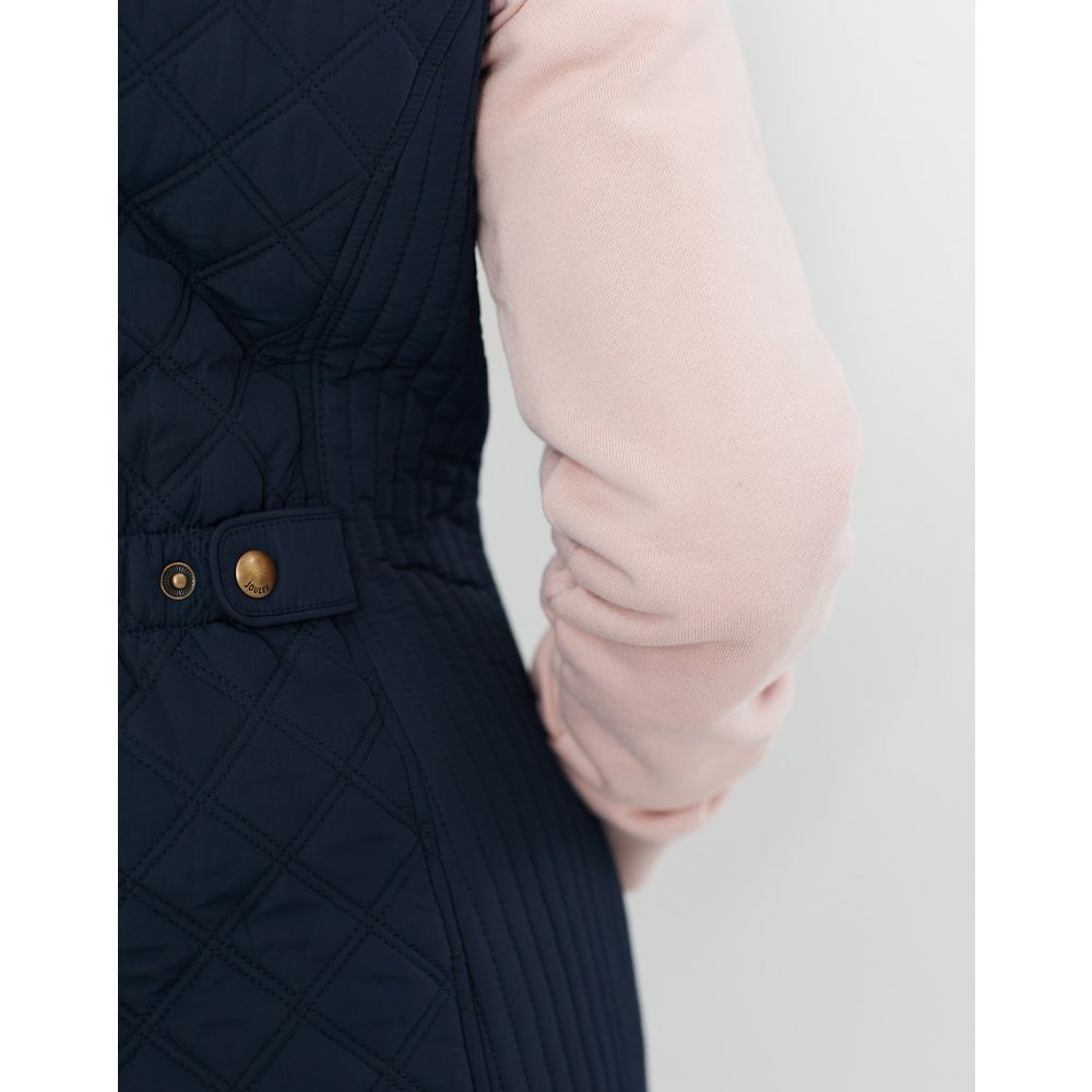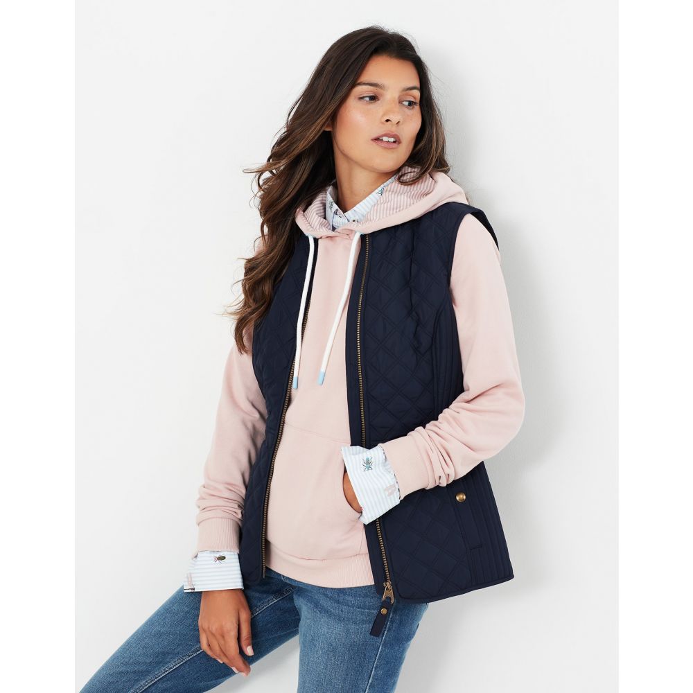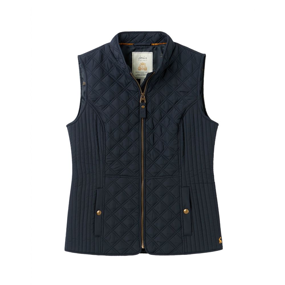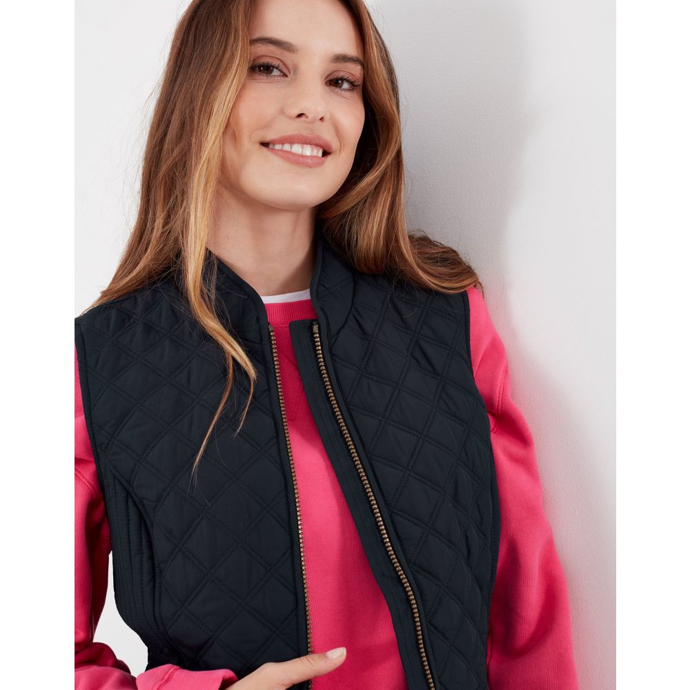 Product ID: 214428JoulesThe Joules Minx Diamond Quilted Gilet is an outerwear essential, perfectly made for popping into town or strolling through fields with the dog. This all-year-round layering piece has diamond quilting, a zip through fastening, welt pockets with exposed metal poppers and an elasticated back channel. For a shape that's as flattering as it is comfortable there's fitted side panels down each side too.