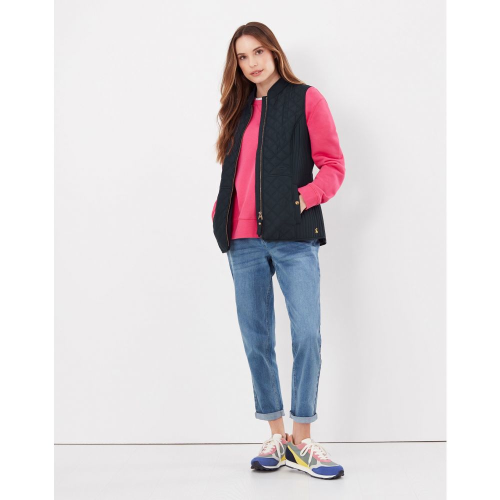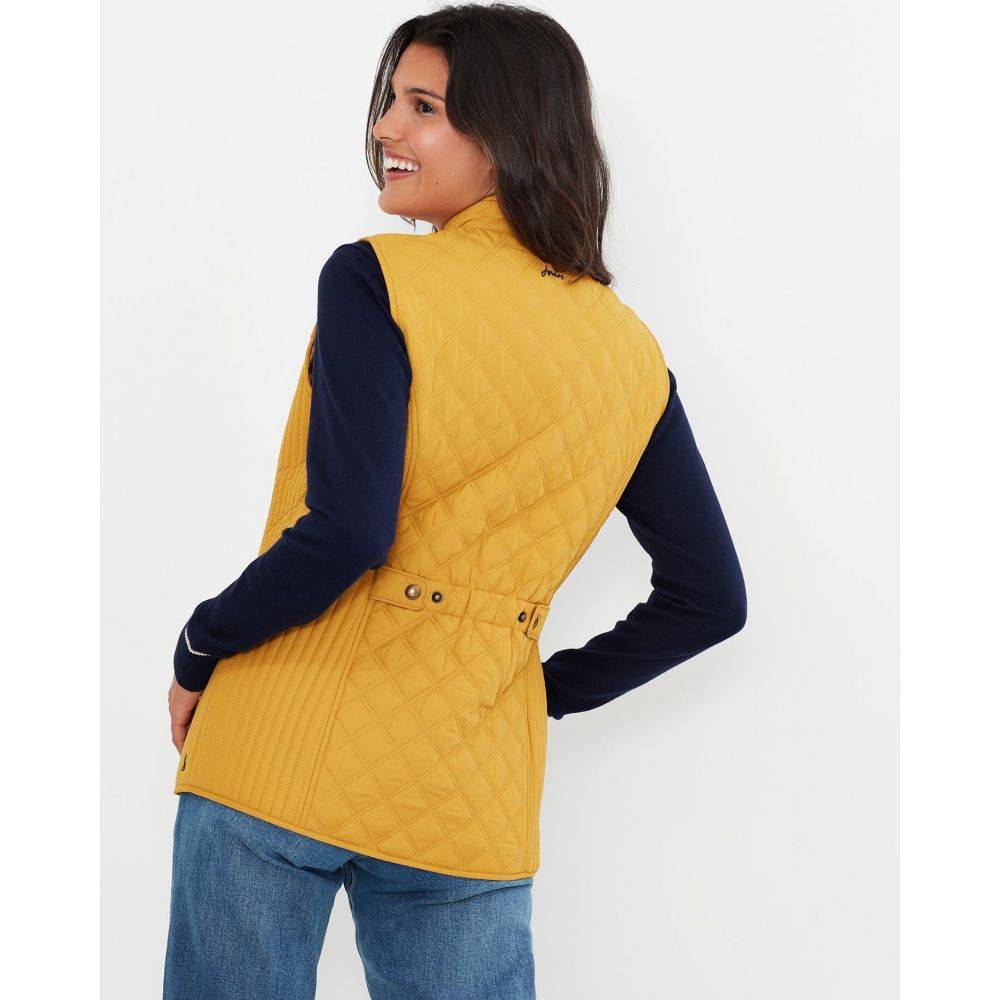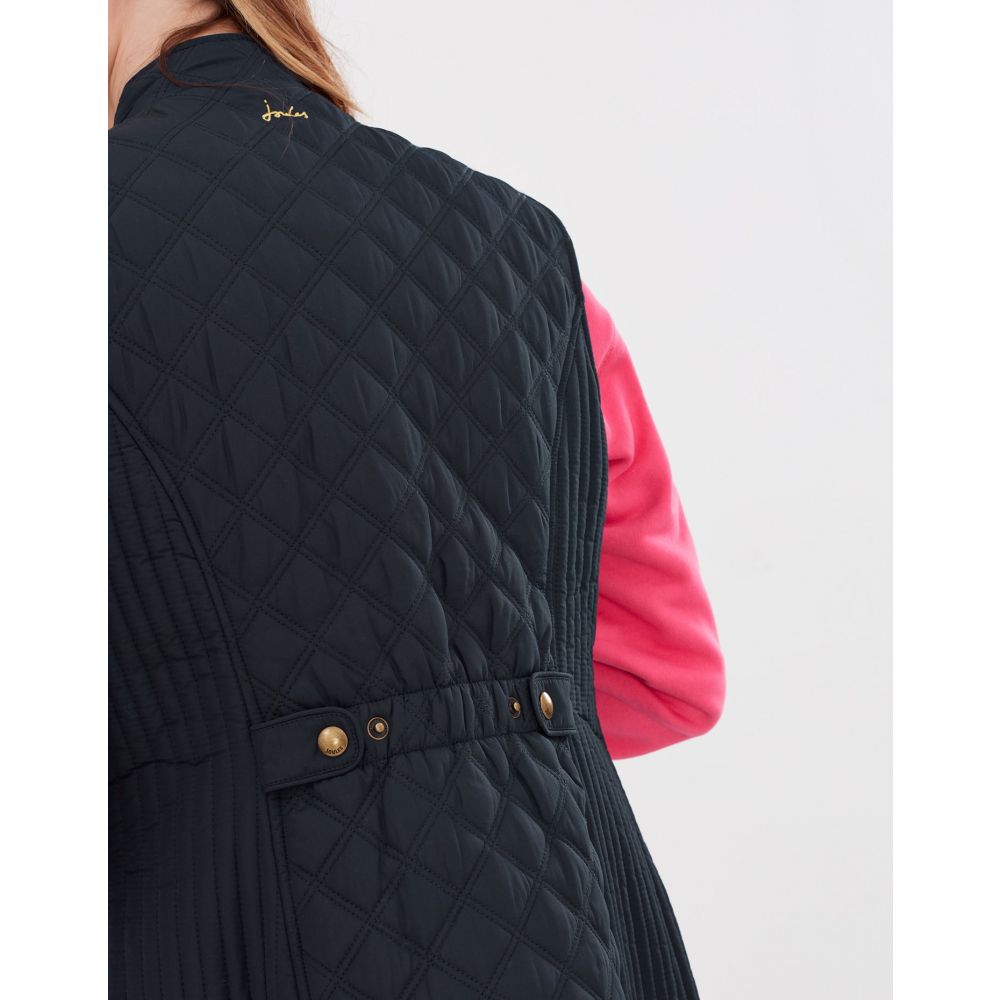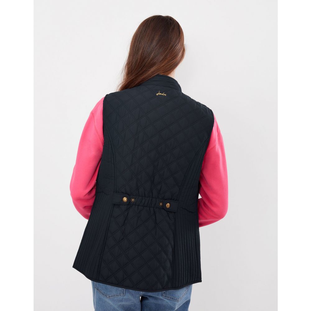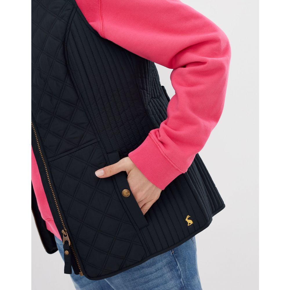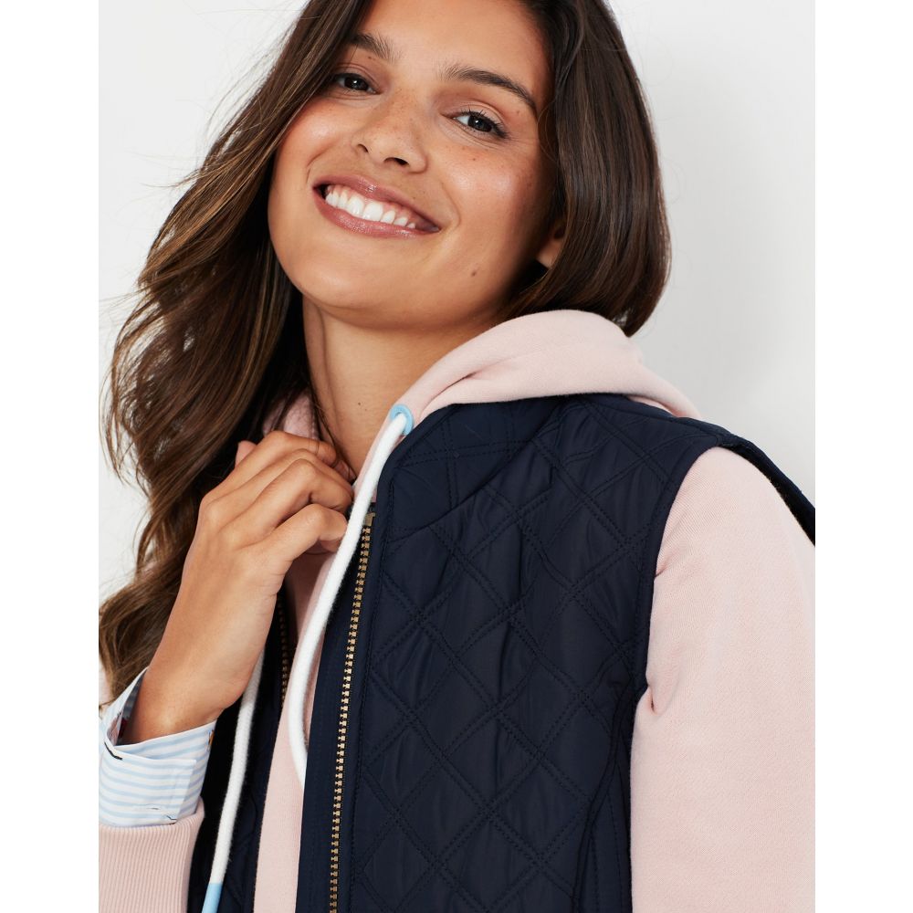 Product ID: 214428JoulesThe Joules Minx Diamond Quilted Gilet is an outerwear essential, perfectly made for popping into town or strolling through fields with the dog. This all-year-round layering piece has diamond quilting, a zip through fastening, welt pockets with exposed metal poppers and an elasticated back channel. For a shape that's as flattering as it is comfortable there's fitted side panels down each side too.