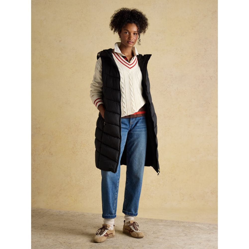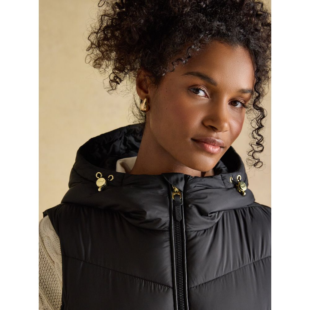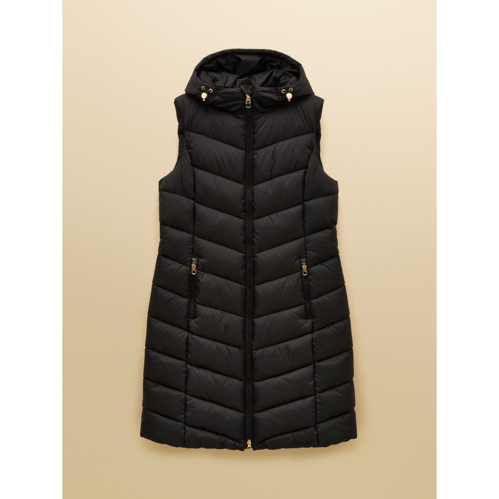 - Moorsdale Black Longline Showerproof Padded Gilet with Hood